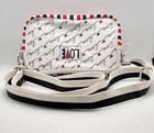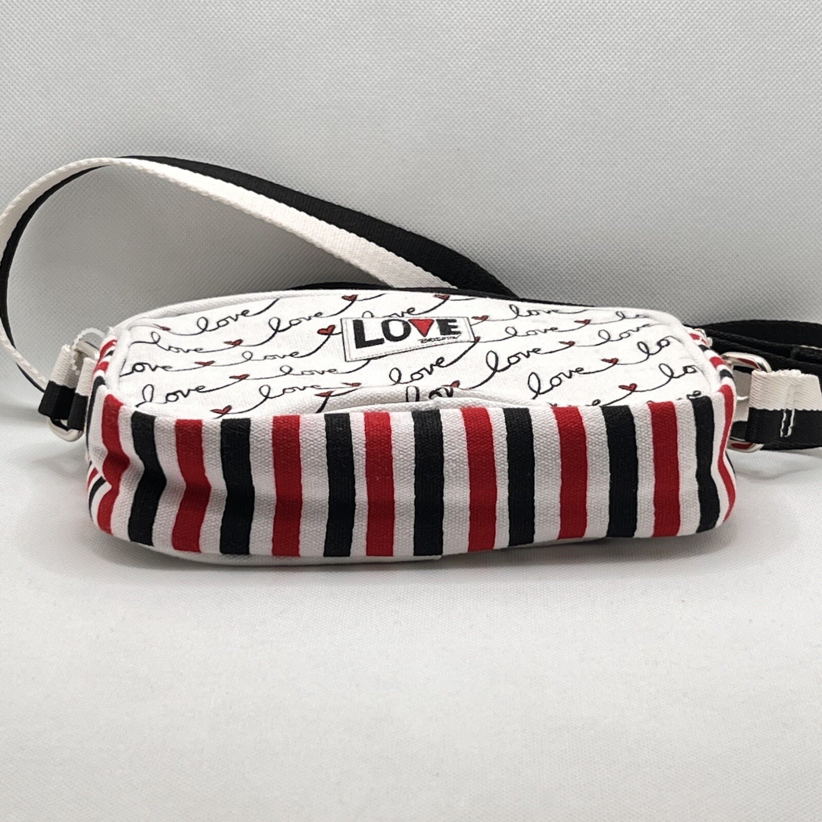 Brighton Love Scroll Crossbody Canvas Camera Bag. Canvas cross body bag features 2 zip compartments. No inner pockets and strap is not detachable! Measures approximately 8” W x 5”H x 2” D Strap fully extended: 26” Thank you for stopping by!