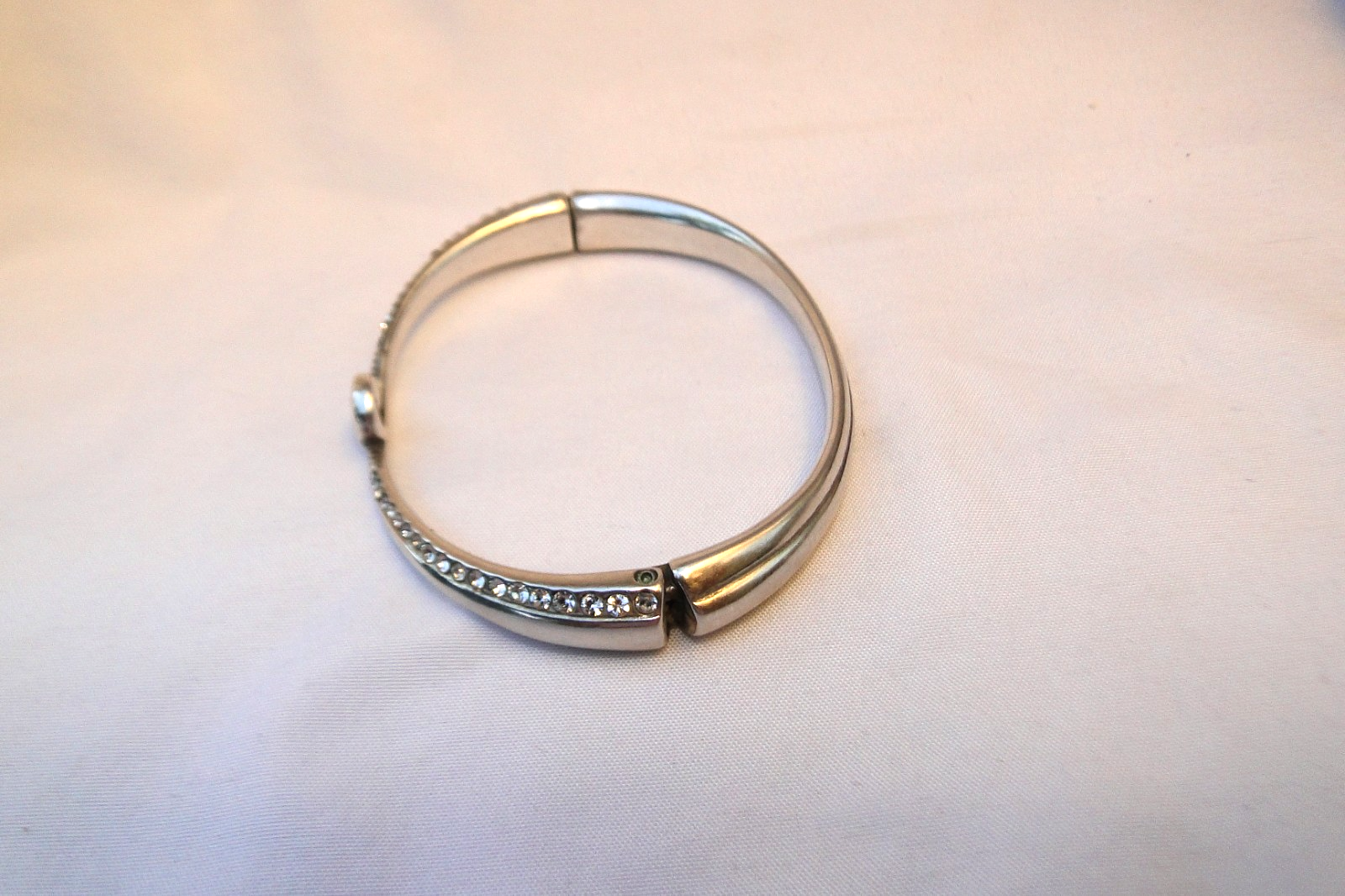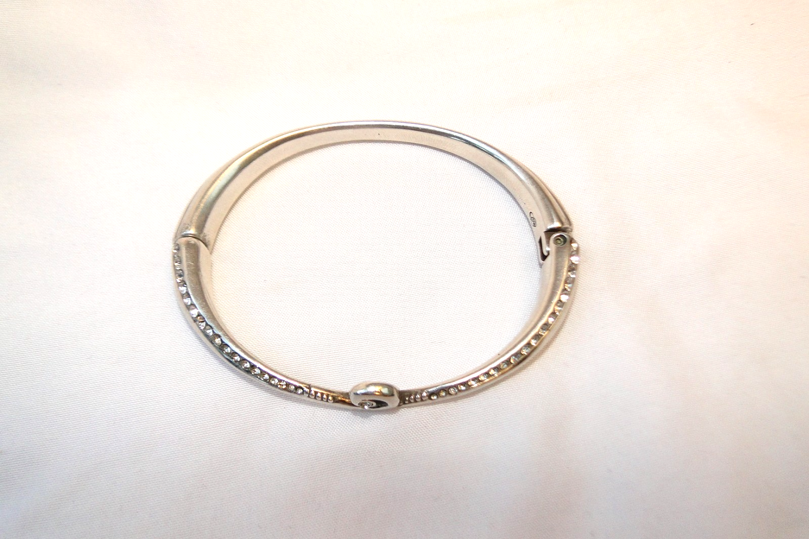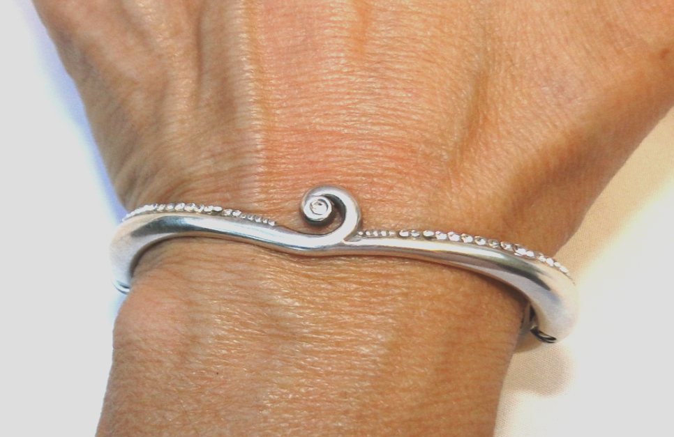 Brighton Crystal Breeze Bangle Bracelet Closure: Hinged Finish: Silver plated Material: Fine quality crystal Width: 1/3 Diameter: 2 1/3" Weak magnet but still can be close Please feel free to ask your questions.