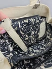 This listing is for a beautiful studded Brighton Pretty Tough Andie Shoulder Bag. Crafted from high-quality leather in a beautiful cream color, this medium-sized bag features a solid pattern and studded accents that add a touch of sophistication to your outfit. The magnetic closure ensures that your belongings are secure, while the cream handle/strap color complements the exterior perfectly. The floral lining material and silver hardware color add a pop of color to the bag, making it a versatile accessory for any occasion. The included key holder and bag charm make it easy to keep your essentials organized. This shoulder bag is perfect for women who want a stylish and practical accessory that will elevate their outfit. This lovely handbag is a cream color (rather than white) goes with so many outfits. Perfect for spring and summer. Lightweight and with two exterior pockets and 3 interior pockets. It is in preowned condition. Metal has some wear and leather has some areas of discoloration. Please see the photos for more detail.