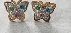 This beautiful jewelry set by BRILHO features a pink, teal, and gold-tone butterfly design. The set includes a pair of pierced stud earrings and a matching pendant with a 19-inch chain. The earrings and pendant are adorned with sparkling rhinestones, giving them a bohemian, love, and beauty-themed look. Perfect for any occasion, this necklace and earring set is a must-have for any fashion-forward woman. The set is brand new and in excellent condition, ready to add a touch of glamour to your outfit.