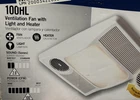 Broan 100HL Ventilation Fan with Light and Heater - Brand New - Never Used. - Still secured in the original packaging. - Condition: • New, Never Used • Box shows some light cosmetic wear from storage - Features: • 100 CFM ventilation • 2.0 sones • 1500-watt built-in heater to warm the bathroom quickly • 100-watt light (A19 bulb, not included) • Additional night-light feature (bulb not included) • White grille design • Fits standard 2” x 6” ceiling construction • 4-inch duct connection • Heater direction adjusts to direct warm air where needed - Dimensions: -Housing Size: 16” L 10-1/4” W 5-7/8” H -Grille Size: 17-1/2” L 11-1/2” W -Duct Size: 4” - (Retails around $300+ originally).