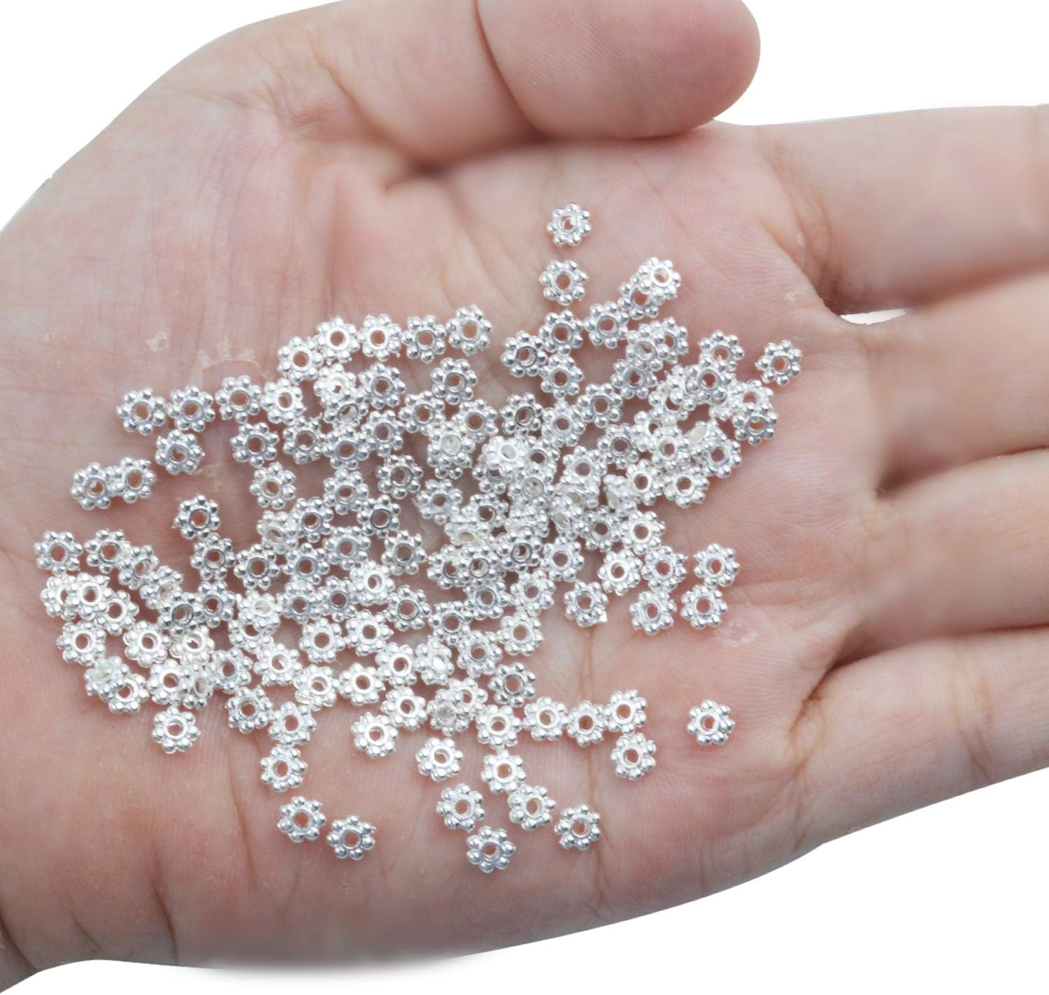Shape or Style:Beautiful Daisy. Indispensable jewelry component accessories beads, spacer beads. Good accessories for you to diy what you like,such as bracelet, anklets and some other handicraft works. Size: 4mm in diameter, 1.5mm thick, with a 1.5mm hole;Material: Metal; Include of Package: 500 x Christmas Snowflake Silver Spacer Beads. Color: Silver. Diameter: 4mm. Quantity: approx 500pcs. Create beautiful and unique jewelry findings and beads for making your own necklaces, bracelets, charms, and earrings.