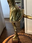 Gracefully capturing the elegance of a skater in mid-pose, this Art Deco ice skater sculpture is a timeless piece that beautifully embodies the chic style of its era. Crafted from high-quality bronze, the sculpture rests atop a polished marble base, enhancing its classical appeal and adding to its overall sophistication.The work is signed, indicating its authenticity and the artist's touch, making it a collectible treasure for enthusiasts and connoisseurs alike. Its striking presence is sure to be a conversation starter, whether placed in a private gallery or as a standout piece in a entryway. It's in wonderful condition, little wear of some of the gold paint on the one calf of a leg, but it could easily be touched up with some gold paint, no breaks, scratches, it's in overall great shape, would be great entryway piece. Artist signed, she is 19" without stand and 23" with marble base.