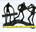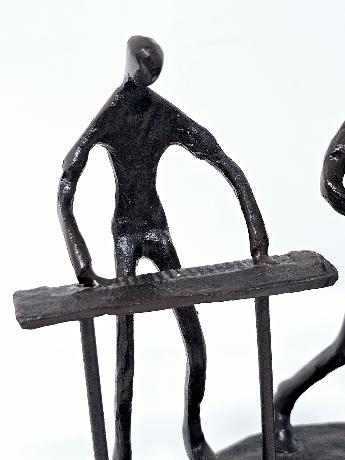 Great condition, no damage seen. Bottom has a protective cloth to prevent scratching on surfaces. This stunning sculpture is a must-have for any art lover or music enthusiast. Crafted from high-quality bronze, this small statue captures the essence of a guitar player, pianist, and singer in a brutalist style that is both unique and striking. Measuring 5 inches in height and 7 inches in length, this sculpture is perfect for display in any space. The intricate details and impressive artistry of this piece make it a true collector's item. Whether you're looking to add to your collection or simply want to enjoy the beauty of this sculpture, it's sure to impress. So why wait? Add this remarkable piece to your collection today!