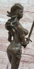 Condition : This sculpture is in perfect condition. Bronze Dimensions with Marble Base: Height 12" X Width 4 1/2" Marble Dimensions:4 1/2" X 4 1/2" Height without base:11" Weight:10 LBS Inventory:47Y7114074 Embrace the power and allure of our striking Amazonian warrior bronze sculpture. Strong, skilled, and undeniably sexy, she exudes a fierce presence, ready to face any opponent with her sword in hand. Standing tall and fit, her womanly curvaceous figure adds a touch of femininity to her formidable stance. With an intriguing helmet headpiece adorning her head, her minimalistic yet captivating outfit emphasizes her confidence and strength. Poised to swing her sword with full force, her shield rests at her feet, a testament to her readiness for battle. The sculpture was meticulously crafted using the revered lost wax method, ensuring every detail is captured with authenticity and precision. Resting on a sleek black square base, this masterpiece bears the signature of the renowned artist Aldo Vitaleh, a symbol of its genuine artistry and craftsmanship. This Amazonian warrior bronze sculpture is a captivating tribute to the warrior spirit and the beauty of feminine strength. Whether displayed as a focal point in your home or as an eye-catching addition to an art collection, it is sure to command attention and admiration. Celebrate the essence of power and allure with this exceptional artwork, a true representation of an indomitable warrior in the world of bronze. Handmadenbsp;Vitaleh Original Bronze Sculpture Female Amazon Warrior Marble Figurenbsp; Video will open in a new window Using the eBay App? Paste link into a browser window: [isdntekvideo]