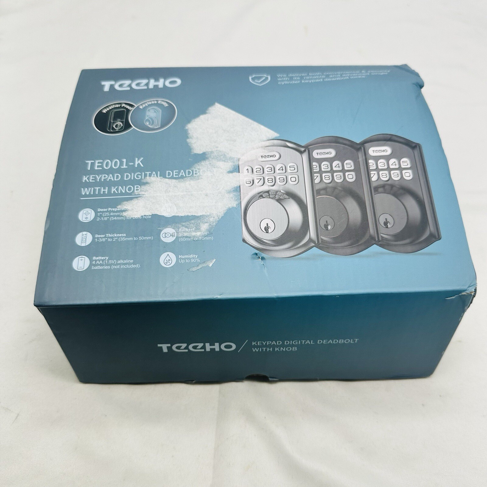 Description TEEHO TE001K Keyless Entry Door Lock with Handle - Electronic Keypad Deadbolt with Door Knob - Deadbolt Smart Lock for Front Door - Auto Lock - Easy Installation - Matte Black Important Information Please, feel free to ask us a question if you have any doubts about this item. We will answer your question very quickly. Make sure you read the item description and check pictures before purchasing. We always want to make sure you are satisfied with the product, so make sure you understand the condition of the item before purchasing. Open box items: Open box items are in excellent, like new condition, and most of the time have never been used. These items may present damages to the box and consequently to the products inside. These damages may be little scuffs or scratches either to the box or to the item , so they can't be advertised as new. These items are discounted, and if you like a great deal this is for you! If there are any major details or items missing, they will be described in the listing or shown in the pictures. We ask you to please understand the condition of the item before purchasing to avoid being disappointed. All open box items are tested, cleaned, and thoroughly inspected before being sealed back by us. Shipping Policy We usually ship items on same day if the payment is completed before 3:00 PM EST . All our items are shipped with extreme care, and we will make sure you get it safe and sound. Return & Refund Policy All our items are inspected, tested, and cleaned. Once you receive the item, you may have questions or technical issues and it's all good man. Just contact us and we will promptly resolve it. We offer free returns ONLY on items that malfunctions at arrival (Dead at Arrival) or are Not as Described . Serial numbers are recorded for security reasons, all packages and items are documented prior to shipping. Packaging is recorded and pictured for quality control and resolve claims. Feedback Please send us your honest feedback after your product is delivered. That helps us improve and grow our store. We appreciate your visit and hope to do business with you again. Thank you and have an amazing day!