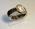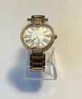 Elevate your ensemble with the Bronzo Italia Women's Watch, a harmonious blend of elegance and functionality. The 36mm round case is crafted from a combination of yellow gold and stainless steel, exuding a warm and enduring charm. A pristine white dial adorned with Roman numerals and encircled by a gem-set gold bezel complements the bracelet's intricate design. The watch offers a hidden fold clasp bracelet for a secure fit up to 6.75 inches, ensuring comfort for an array of wrist sizes. Swiss-made with a reliable quartz movement, it also boasts water resistance up to 30 meters, making it suitable for everyday wear and light aquatic activities. Indulge in the timeless allure of this dress/formal style timepiece, designed to add a touch of sophistication to any look. 116