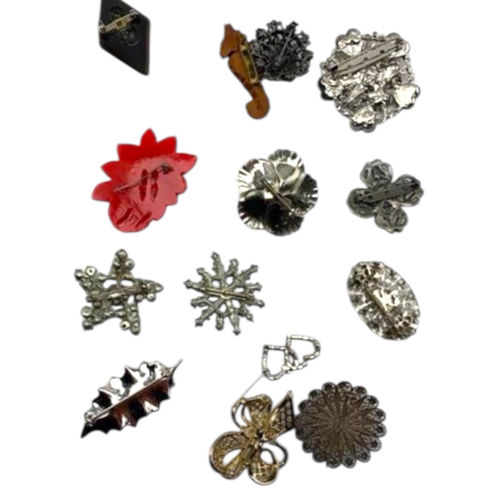 Brooches Lot Of 14 Mixed Brooches Estate Sale Celluloid Silver Tone Good Tone