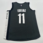 This is a youth boys' size small gray Brooklyn Nets jersey featuring player Kyrie Irving's name and number. Officially licensed by the NBA and made by Fanatics, this basketball jersey is perfect for young fans of the Brooklyn Nets to show their support for the team. Check Pictures for flaws and measurements