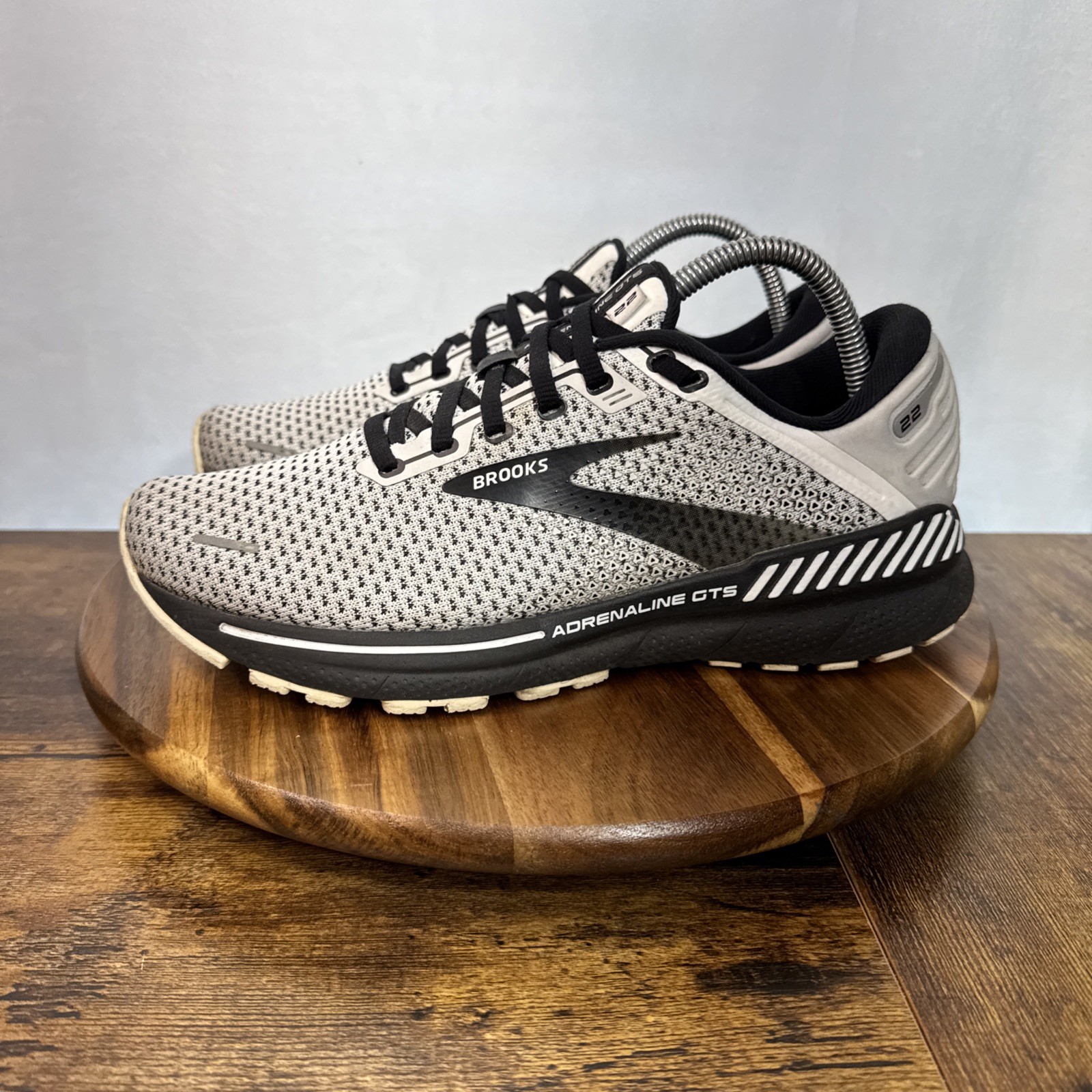 Step up your game with the Brooks Adrenaline GTS 22, a staple for any active wardrobe. Crafted for the modern woman, these size 9.5 sneakers blend style and performance seamlessly. The sleek black with Oreo accents and white logo detailing offers a versatile look that transitions effortlessly from a morning run to a casual day out. Engineered with Brooks' signature cushioning and arch support, these trainers prioritize comfort and stability during any activity. The breathable fabric lining and lightweight design ensure your feet stay cool and comfortable, while the durable rubber outsole provides reliable traction. Perfect for running, gym training, or casual wear, these shoes are designed to keep pace with your active lifestyle.