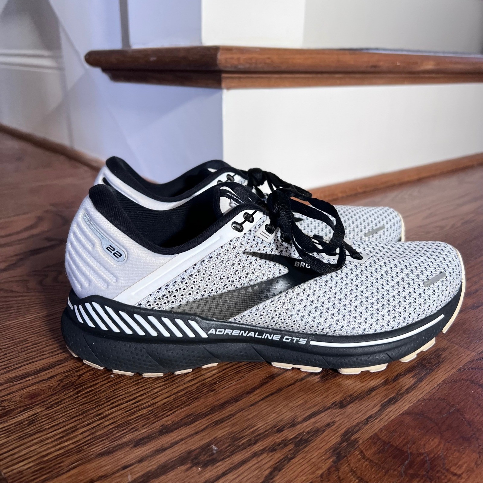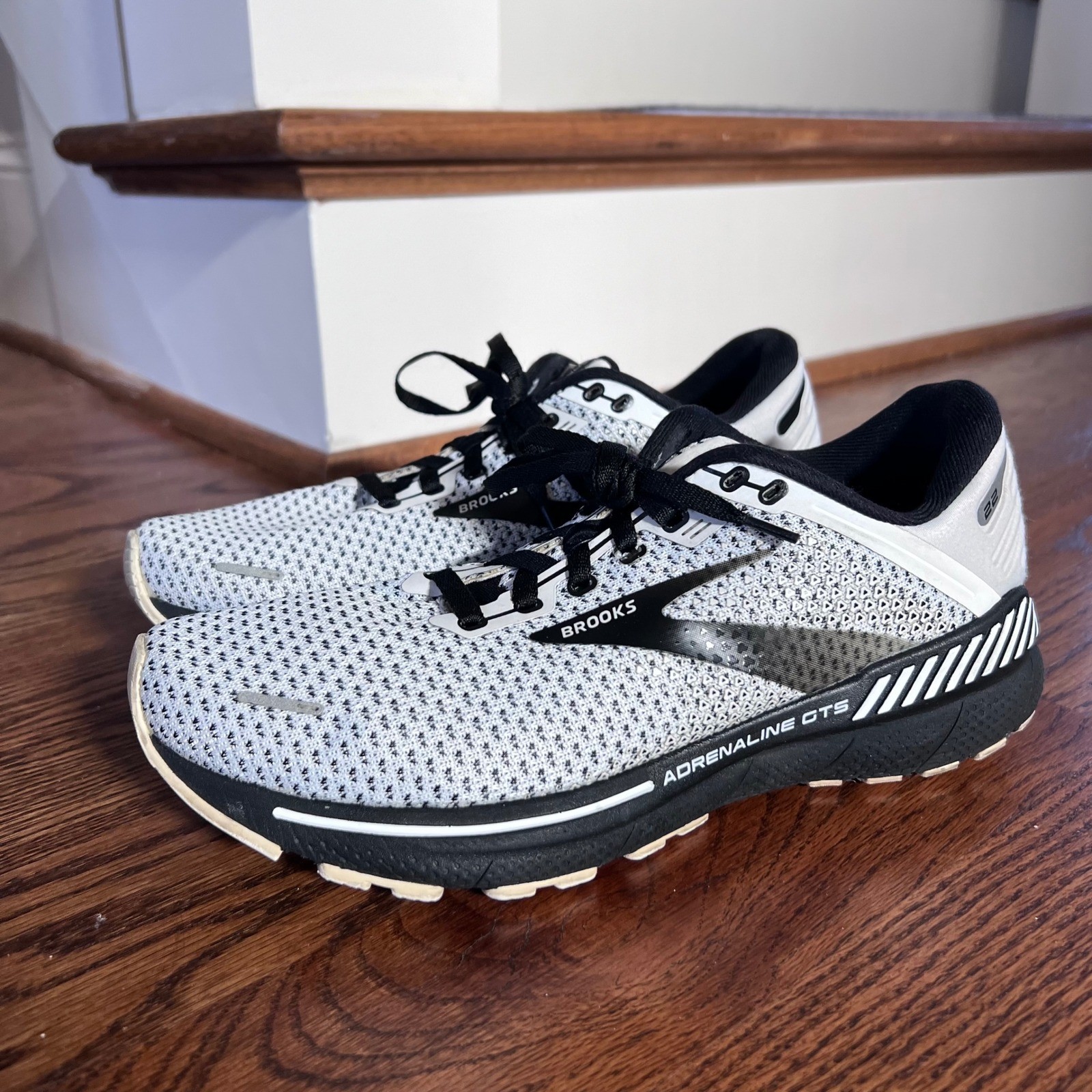 Brooks Adrenaline GTS 22 women's running shoes in white black and grey. These supportive shoes offer a balanced cushioning and reliable support for everyday runs. The engineered mesh upper provides breathability while the DNA LOFT cushioning ensures a soft feel. Ideal for road running or gym workouts. Size 9.5. Excellent condition. Keywords: Brooks running shoes, women's athletic shoes, supportive running shoes, cushioned sneakers, everyday trainers, breathable mesh, road running, gym shoes, active footwear, performance sneakers, athletic sneakers Check out my store for other great finds. See my other listings!