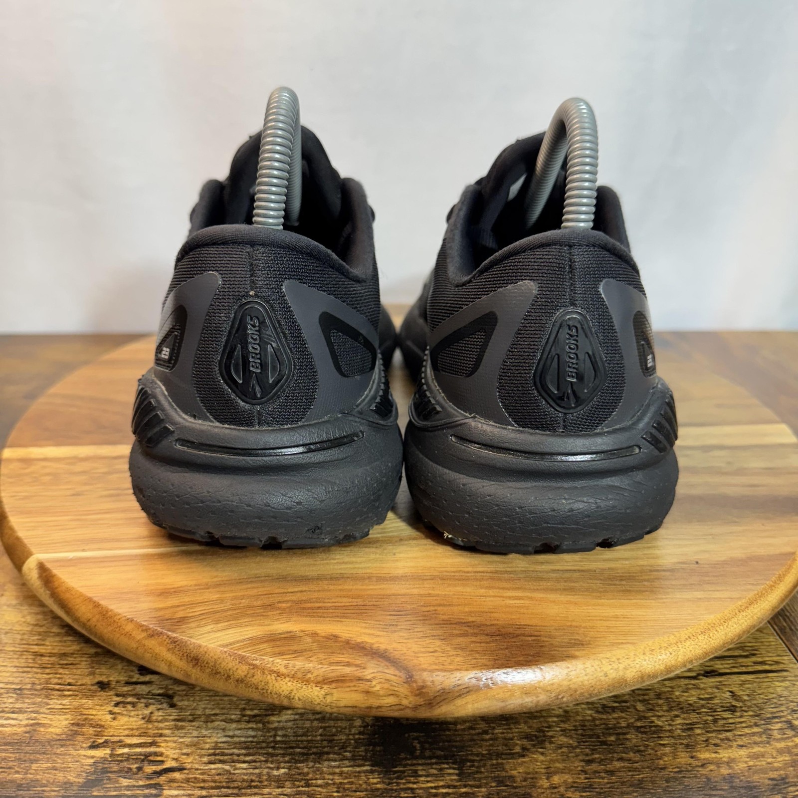 Brand: Brooks Style: Adrenaline GTS 23 stability running shoes with cushioned midsole and lace-up closure. Gender: Womens Size on tag: US 7.5; EUR 38.5; UK 5.5; CM 24.5; CN 245(1.5); width Medium (B). Color: Black with dark gray accents. Style/Model code: 1203811B020; production date 03/23. Details: Engineered mesh upper for breathability, GuideRails support system, padded collar and tongue, removable insole, and durable rubber outsole designed for road running.