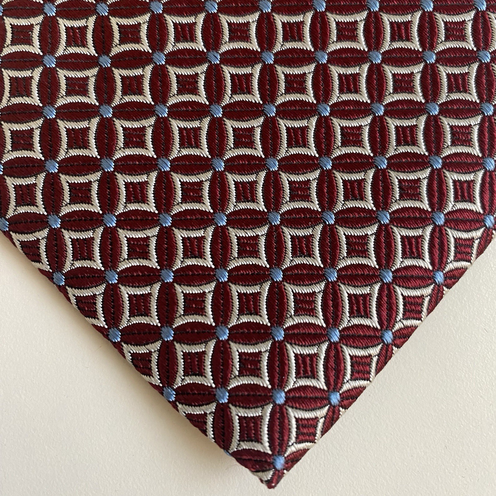 Brooks Brothers 346 Men's Silk Tie Geometric Red Blue Silver USA Designer