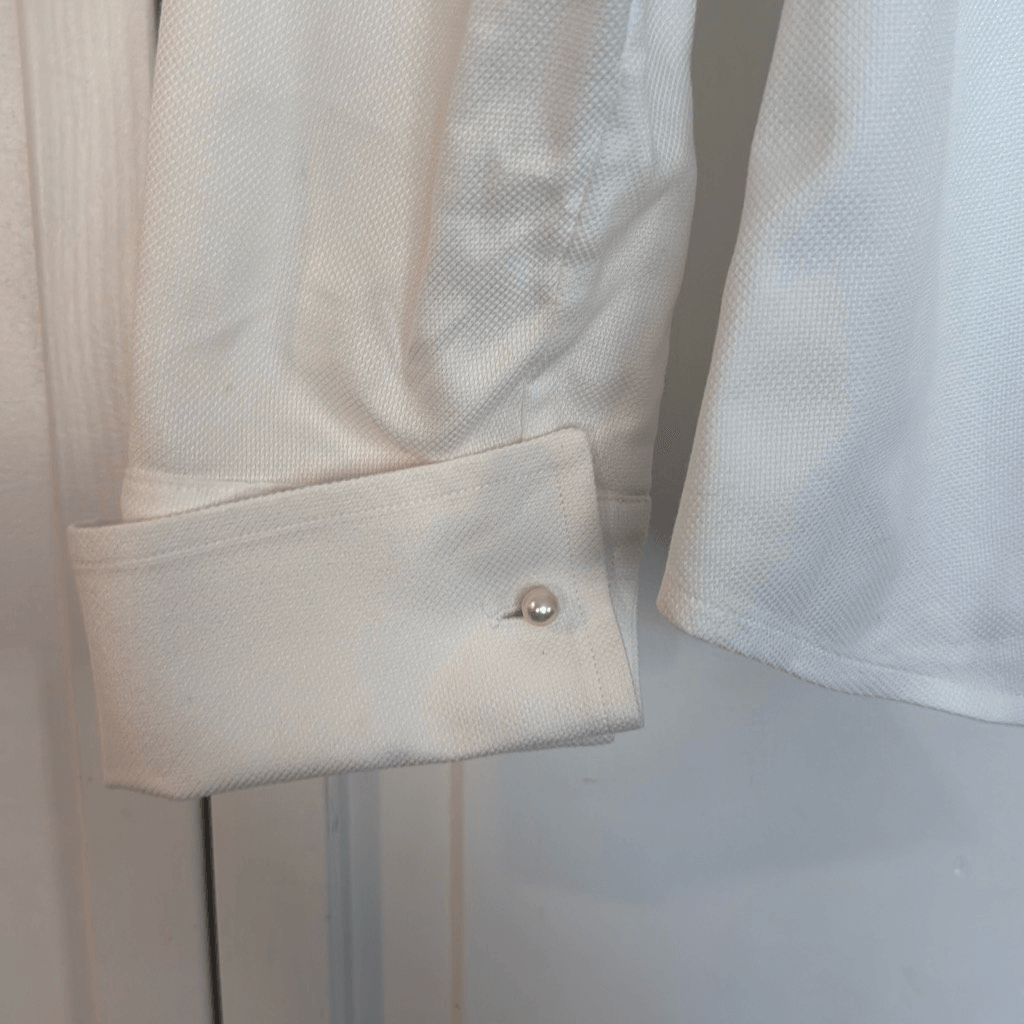 This Brooks Brothers white cotton button-down is a timeless staple! The pearl cuff adds a touch of elegance, and the Italian craftsmanship ensures top-notch quality. The gently worn condition still looks crisp and fresh, with a perfect fit (17" pit-to-pit, 24" length). Great for layering or dressing upโsuch a versatile piece! Highly recommend!
