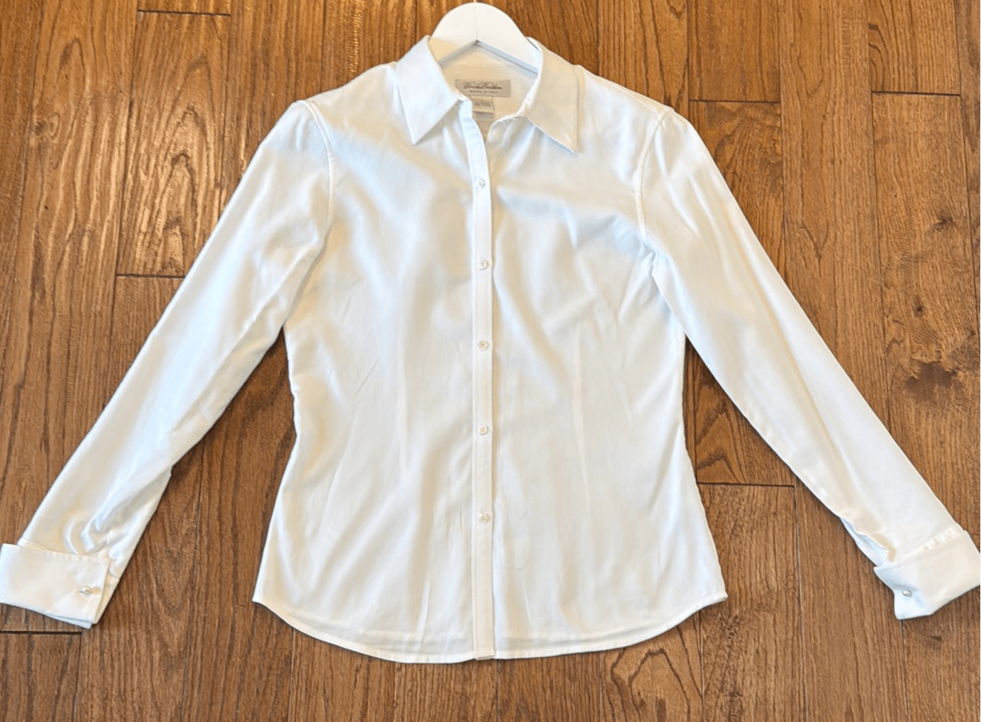 Brand: Brooks Brothers Description: 100% cotton woven in Italy pearl cuff button down Size: 2 Color: white Condition: Gently Worn Very Good ๐๐ป Measurements: Pit to pit: 17โ Length: 24โ **Bundle and Save!!** all measurements are approximate and taken laying down C5