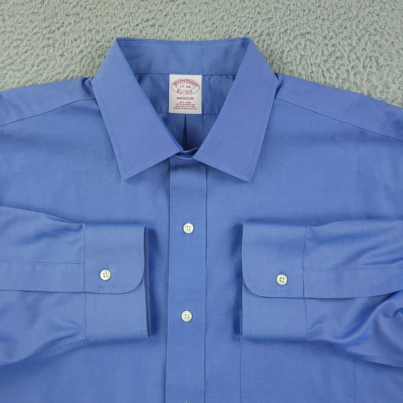 $ 7.59Brooks Brothers Dress Shirt 16.5 x 35 Blue White Check Traditional Fit Non-Iron