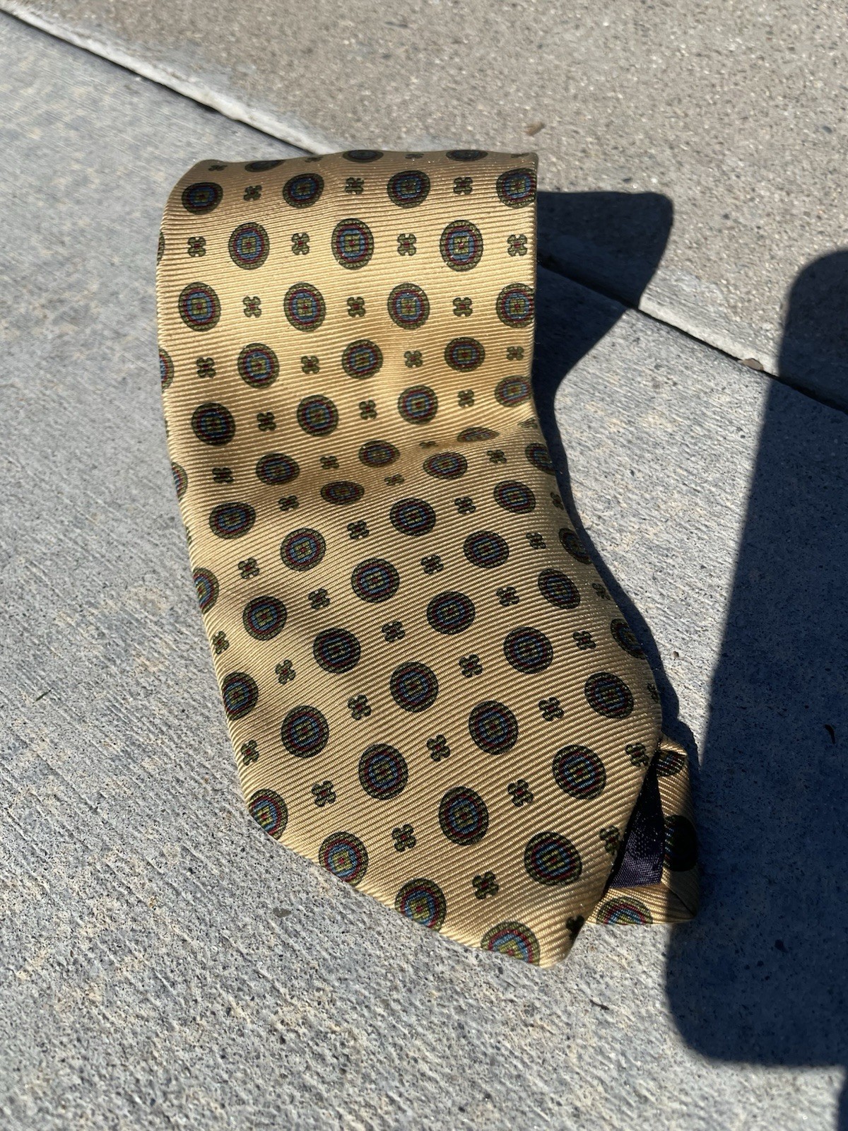 The Brooks Brothers Tie in Pure Silk, proudly made in the USA, is a classic accessory for men's formal attire. This gold tie features a woven fabric made from 100% silk, with a logo accent, and a classic length of 57"-60". The adjustable design ensures a comfortable and stylish look for any occasion. Made by the renowned brand Brooks Brothers, this tie is a timeless and sophisticated choice for any man's wardrobe.
