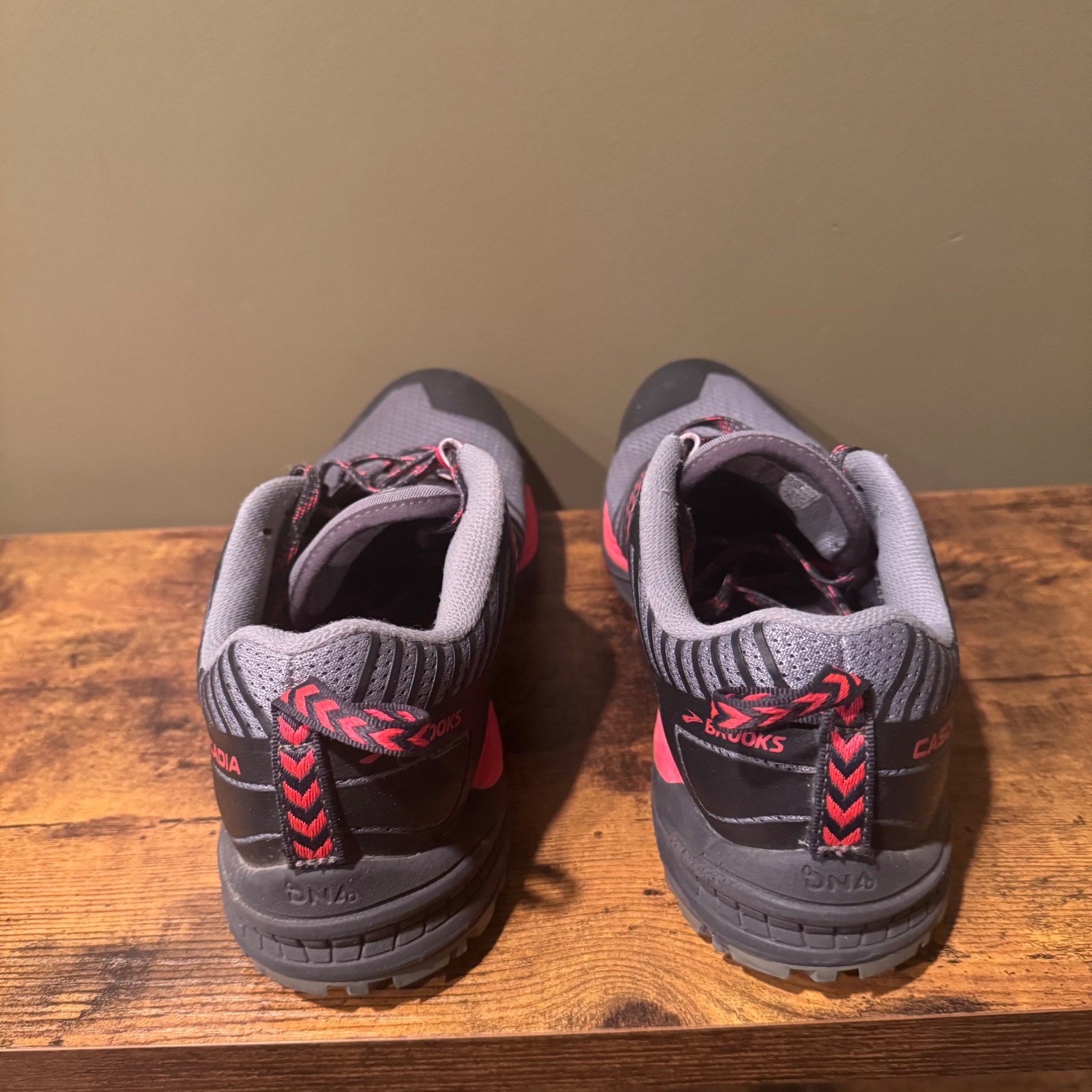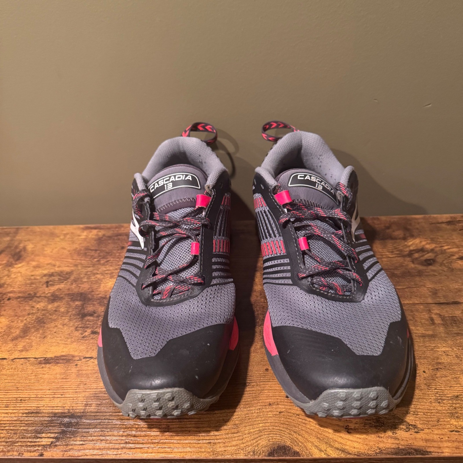 Conquer any terrain with these dynamic Brooks Cascadia 13 trail running shoes. Designed for adventure, their rugged construction and vibrant pink accents offer both performance and style. Experience superior grip and support on challenging trails, ensuring every step is confident and comfortable. Perfect for your next hike, trail run, or outdoor exploration. Measurements: • USA Women's Size: 9.5 • UK Size: 7.5 Department: Unisex Adults UK Shoe Size: 5.5 Model: Brooks Cascadia 13 Product Line: Brooks Cascadia Theme: Athleisure Upper Material: Breathable Mesh Features: Cushioned, Arch Support, Breathable, Lightweight, Slip Resistant Shoe Width: M EU Shoe Size: 41 Style: Sneaker Type: Athletic Keywords: trail running, hiking, athletic footwear, outdoor gear, sportswear, performance shoes, women's athletic, rugged shoes, cushioned, supportive, adventure footwear, versatile