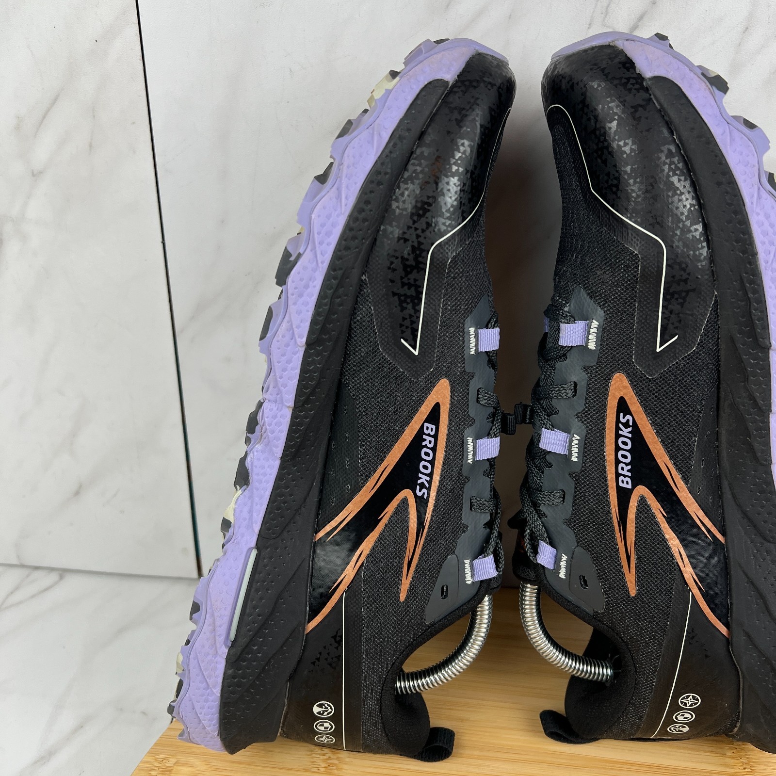Brooks Cascadia 18 Womens Size 11.5 Ebony Lavender Hiking Trail Shoe 1204161B048 Condition: Pre-Owned. No rips, holes, or tears. Comes from a smoke-free environment. No original box. You will be receiving the exact shoes shown in the picture. Please reference all photos for exact condition. All orders placed Friday-Sunday will be sent out on Monday. Thank you for checking out our product, please feel free to browse our store as well for other great deals!