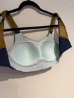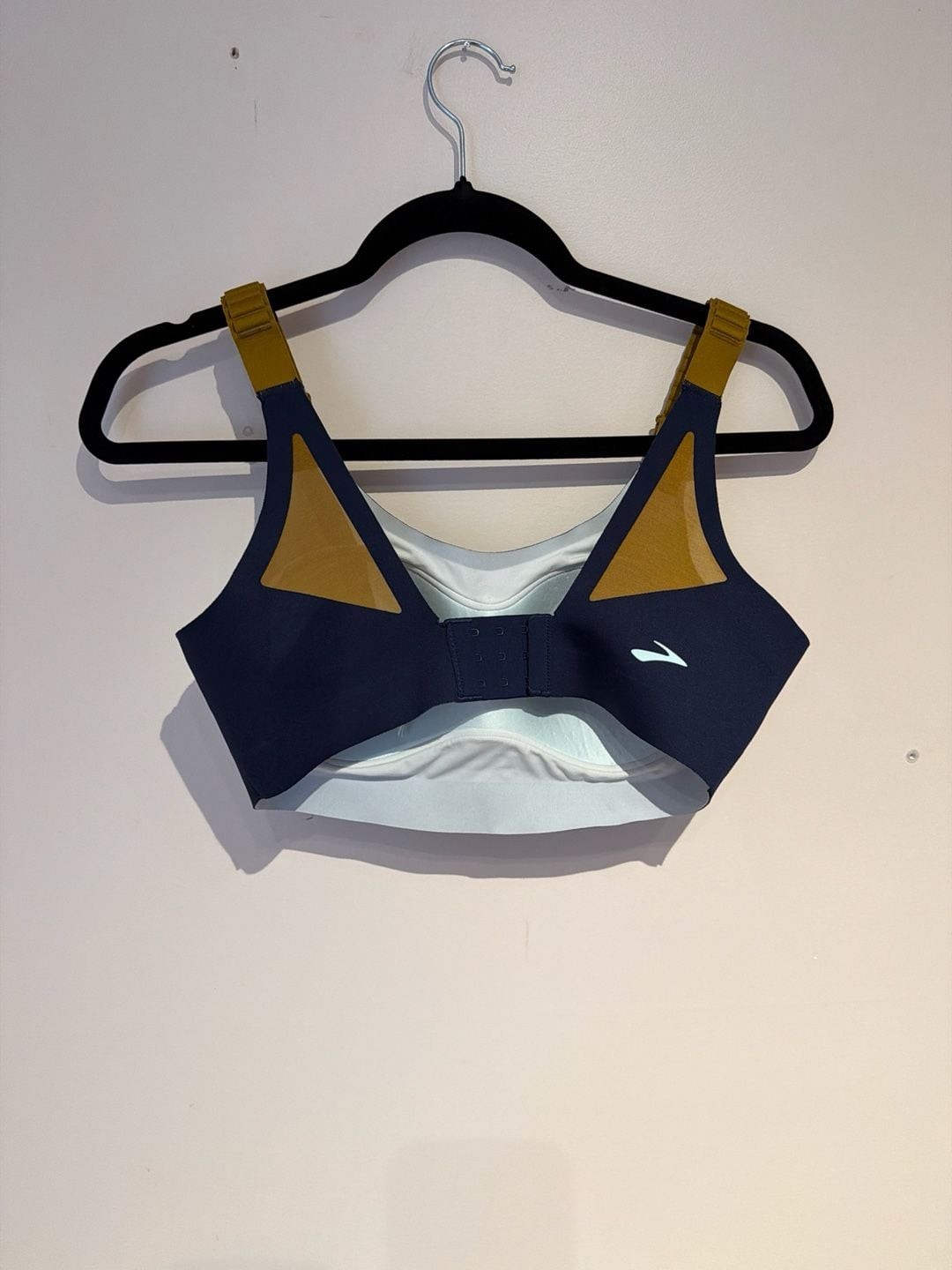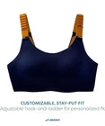 Brooks Dare Scoopback 2.0 High-Impact Running Sports Bra in Navy and Burnt Olive. Size 34C/D. This high-performance sports bra is built for maximum support during high-impact activities like running. Features an adjustable scoopback design with hook-and-eye closure for a personalized fit. The seamless construction and integrated bottom band provide comfort and reduce chafing. Breathable mesh details on the back straps enhance airflow. Condition: Excellent pre-owned condition. Like new. Clean with no visible signs of wear or defects.