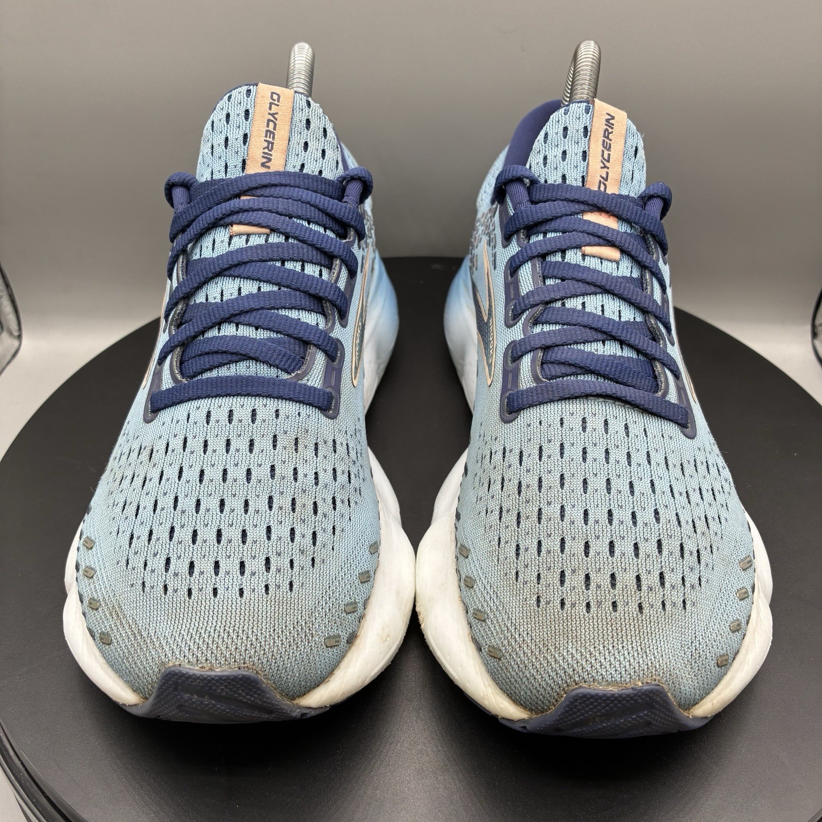 Brooks Glycerin 20 Women’s 8 B Blissful Blue Running Athletic 1203691B478 Sneakers are in good pre-owned condition. No defects but does have staining on the upper from wear. Also has heel drag and on the heel the 20 logo on the inner has peeled off on both shoes. Smoke free and pet free home. We list new stuff everyday! Feel free to send offers anytime! Please review all pictures and ask any questions you’d like before purchasing! Sipping next business day! The product is a pair of Brooks Glycerin 20 Women's athletic shoes in size 8 B with a beautiful blue color. These sneakers are part of the Brooks Running product line and feature a comfortable mesh upper material. The design is inspired by athleisure and sports themes, making it a stylish and practical choice for women who enjoy running and staying active. With its angel character and colorful style, these shoes are sure to bring joy and comfort to any workout routine.