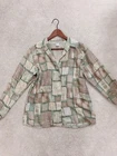 Yes, I do combine shipping! You should see the combine shipping price when you click on the "Shipping and Payment" tab next to the "Description." Silk button up shirt! "Look good, feel great, love life. Follow your heart." Details Not stretchy material, buttons up the front. Condition Excellent used condition, no defects. No stains, rips, or any flaws noted. Color Beige, green, brown. Due to lighting and camera settings, the actual color may appear different than shown in photos. Also, please keep in mind that every screen displays color differently. Material 100% silk. Size The tag says size Small. The model is wearing the actual item, unpinned. Model The model is 110 lbs, 5’2, 34b, 25, 35, wears size XS/S. Bust 21 inches across Waist 20 inches across Length 26 inches from shoulder to bottom hem Measurements are approximate with the garment lying flat across. Please read the measurements carefully. The length will be different on everyone depending on height. Why should you purchase from me? I am a reliable seller I ship lightning fast Everything is smoke-free and carefully inspected Pre-owned items have been washed/dry cleaned before listing My goal is for each transaction to be perfect the first time around. If you have any issues with your purchase, please send me a message here within 3 days of the delivery confirmation. Please do not leave a neutral or negative feedback because I will always make sure you are 100% satisfied. Payment is due within 48 hours from close of auction. An Unpaid Item case will open after 48 hours. If you need more time, you have about 4 more days to make payment while the case is open. We will not hold items longer than 6 days. We accept PayPal, Visa, MasterCard, American Express, and Discover. We ship Monday thru Friday, excluding national holidays, using the United States Postal Service. All shipments include a USPS tracking number. Please make sure your address is correct. We ship to the United States and all the countries in the Global Shipping Program. No other residents at this time. If you have any questions, please send us a message here on eBay. We do not communicate outside of eBay. Track Page Views With Auctiva's FREE Counter