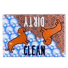 Keep track of the dishwasher with this cute dog magnet! No more guessing if those dishes are clean or dirty! Simply rotate the magnet to display a squeaky clean or dirty Dachshund! Makes a wonderful gift, party favors or stocking stuffers. This magnet measures 2"x3". Artwork is my own. All magnets are handmade in my home studio with a professional press. Made of quality materials, these magnets are rigid. They do not bend. PLEASE MAKE SURE YOUR DISHWASHER HAS A MAGNETIC FRONT. MAGNET WILL NOT STICK TO A PLASTIC, ALUMINUM OR GLASS DISHWASHER DOOR. Magnet making process: All images are hand designed by me. The image is printed on glossy photo paper, hand punched and then hand pressed using a professional magnet making machine. There is a plastic mylar laminating the photo, a metal shell and plastic backing underneath the photo. A sheet magnet is hand adhered to the back of the product. *Returns and exchanges: Due to the nature of these products I do not accept returns or exchanges; however, if you have a problem with your order please do not hesitate to contact me! Processing times: Please allow 2-5 days for me to make and ship your magnet. Please visit my eBay store to view all my cute handmade gifts!