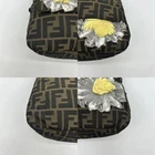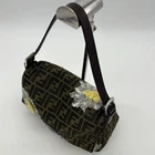 About ITEM Description Brand: FENDI Product Name: FENDI Mamma Baguette Zucca Floral Shoulder Bag Brown Color: Brown Material: Canvas Size: Vertical 20cm Width 30cm Depth 12cm Handle: Approx. 50cm (3-level adjustment on each side, can be worn over the shoulder) Accessories: storage bag Condition: There are no noticeable scratches or stains and it is in good condition. Please confirm the state with a photograph. Shipping Handling Time: 10 business days We will ship your item on week day from Japan. Standard Shipping with tracking number by FedEX or DHL or Japan post. We will ships within 10 business days after receiving cleared payment. ※Business days are not include Saturday, Sunday and National holidays. Package We pack items carefully and send them from Japan prompthy. You should have no concern about shipment. International Buyers - Please Note: Import duties, taxes, and charges are not included in the item price or shipping cost. These charges are the buyer's responsibility. Please check with your country's customs office to determine what these additional costs will be prior to bidding or buying. Thank you for your understanding.