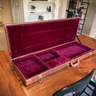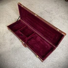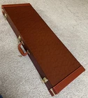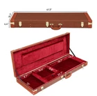 This brown hardshell case is designed to fit Stratocaster and Telecaster style electric guitars. It features a robust construction combining wood, leather, and metal hardware, providing a sturdy exterior that protects your instrument from the rigors of travel and storage. The single capacity case is lined with a soft dark red plush material that cradles your guitar, preventing scratches and damage. The eye-catching brown exterior is accented with gold hardware. Its sleek design, complete with a secure lockable feature and key, ensures that your prized instrument is safe and sound, whether at home or on the go. **Please double check the dimensions in the last photo to make sure the case will work well for your guitar. Specifications: Dimensions: (41.34 x 14.37 x 4.53)" (L x W x H) Color: Brown Material: Wood & PU Leather & Plush & Hardware Accessories Leather Pattern: Microgroove Surface Type: Flat Case Total Length: Inner Length: 39.76" Outer Length: 41.34" Case Inner Width: 12.99" Outer Width: 14.17" Accessory pocket Length: 10.6" Net Weight: 8.5 lbs