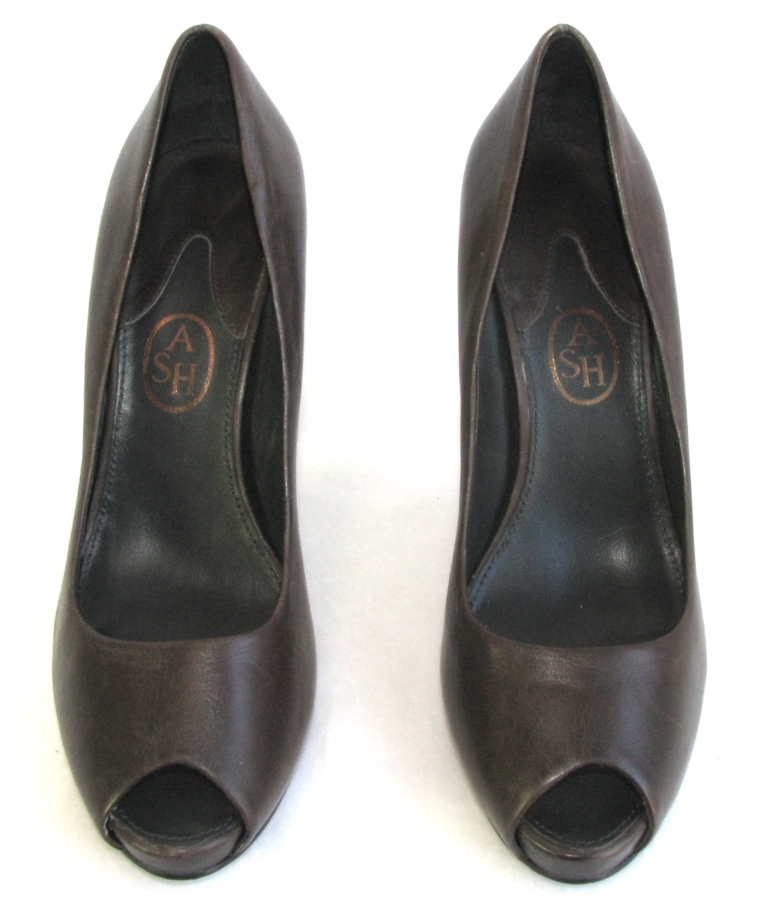 For clothes, I recommend this seller: Lea's Pretty Things Mark : ASH Pretty open-toe pumps Perfectly stable heels Quality leather Non-slip outsole Shoe size: 39 Colors & composition: Colors: Dark brown Upper: Smooth leather Interior: Leather lined Underfoot: Leather Measures : Heel height at the back: 11 cm Heel height inner side: 7.5 cm Top height: 2.2 cm Insole length: 25.9 cm (Take into account the shape of the toe) Width at widest point of outer sole: 7.9 cm EXCELLENT CONDITION SATISFIED OR REFUNDED The photos of my ads are the photos of the items I sell (no photos taken on the web or in magazines ...) I group your purchases to reduce shipping costs All my photos are taken in natural light, in order to best reflect the real colors of the items offered for sale. Any differences in color on the photos of the same item are exclusively due to a variation in exposure to daylight. For clothes, I recommend this seller: Lea's Pretty Things Pretty open-toe pumps Perfectly stable heels Colors & composition: Colors: Dark brown Upper: Smooth leather Interior: Leather lined Underfoot: Leather Heel height at the back: 11 cm Heel height inner side: 7.5 cm Insole length: 25.9 cm (Take into account the shape of the toe) Width at widest point of outer sole: 7.9 cm EXCELLENT CONDITION SATISFIED OR REFUNDED The photos of my ads are the photos of the items I sell (no photos taken on the web or in magazines ...) I group your purchases to reduce shipping costs All my photos are taken in natural light, in order to best reflect the real colors of the items offered for sale. Any differences in color on the photos of the same item are exclusively due to a variation in exposure to dayl