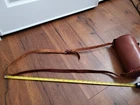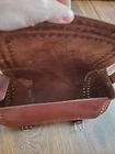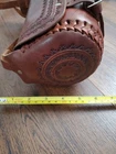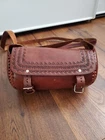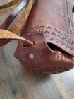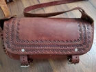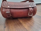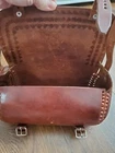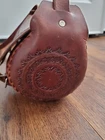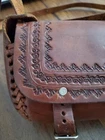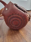 Handmade leather saddle bag, adjustable shoulder or crossbody bag purse, 10" long, 5 width (see pics for approximatemeasurements), has a few marks (maybe pen?), few scratches on leather, beautiful decoration of front & sides, as is, as pictured, no returns. Shipped USPS