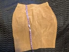 The Don’t Stop Classic's Skirt is a stylish women's leather suede skirt in a solid brown color, perfect for travel and casual occasions. With a back zipper and slit, this above knee-length skirt features a straight and pencil style, ideal for the winter and fall seasons. Made of high-quality leather, this skirt is designed for L but is a regular fit in size M, making it a versatile and fashionable addition to any wardrobe.
