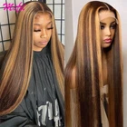 $ 46.184/27 Ombre Curly Human Hair Wig with Preplucked Lace Closure Glueless Design