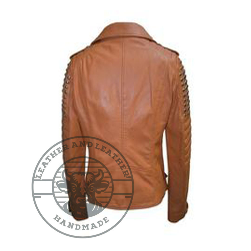 Season: Fall, Spring, Summer, Winter Sleeve Length: Short Sleeve Department: Women Fabric Type: Fleece Jacket/Coat Length: Mid-Length Outer Shell Material: Leather Brand: Handmade Style: Biker Type: Jacket Insulation Material: Polyester Vintage: Yes Size Type: Regular Garment Care: Dry Clean Only Theme: Biker Occasion: Business, Casual, Formal, Party/Cocktail, Travel Fit: Regular Pattern: Solid Size: All Sizes Available Lining Material: Silk Accents: Studded Handmade: Yes Features: All Seasons Closure: Zip Color: Brown Personalize: Yes Country/Region of Manufacture: Pakistan