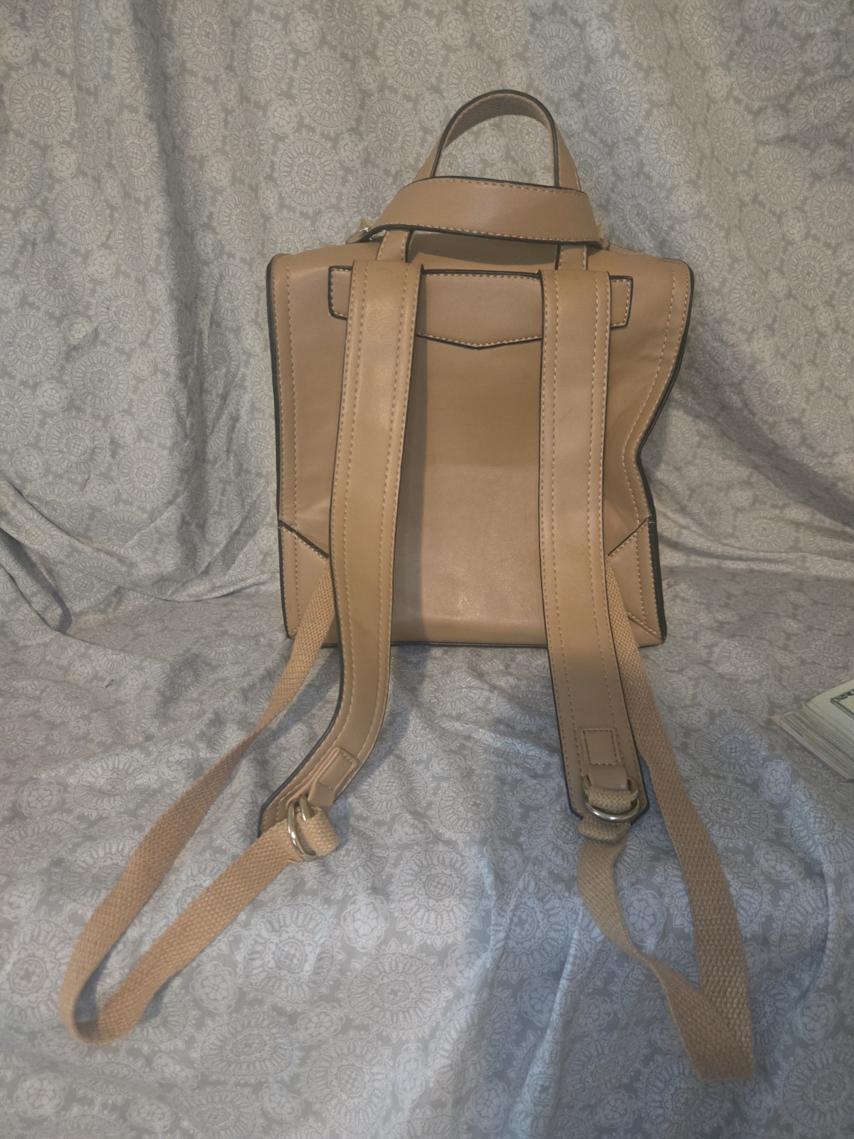 Crafted with versatility in mind, this brown square face bag seamlessly transitions from day to night. The medium-sized leather backpack features a secure fabric lining, ensuring your belongings stay safe and scratch-free. The brown exterior is complemented by matching straps and hardware, exuding an air of sophistication and durability. Accents like stitching details, zipper closures, and studded embellishments add a touch of edgy charm to this unbranded piece. Whether you're running errands or heading out for a casual meetup, this backpack is an understated yet stylish accessory that complements any outfit.