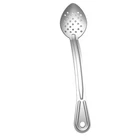 This Renaissance perforated serving spoon from Browne Foodservice features a heavy duty curved handle and the brushed finish will diminish the appearance of wear and tear. This 15" spoon is easy to grip and is perfect for restaurants buffets or catering events. Model #: 4776 Perforated Brushed finish helps hide fingerprints Heavy duty curved handle Curved handle keeps spoon from sliding into pans or food containers Easy to grip 1.75 mm thickness "