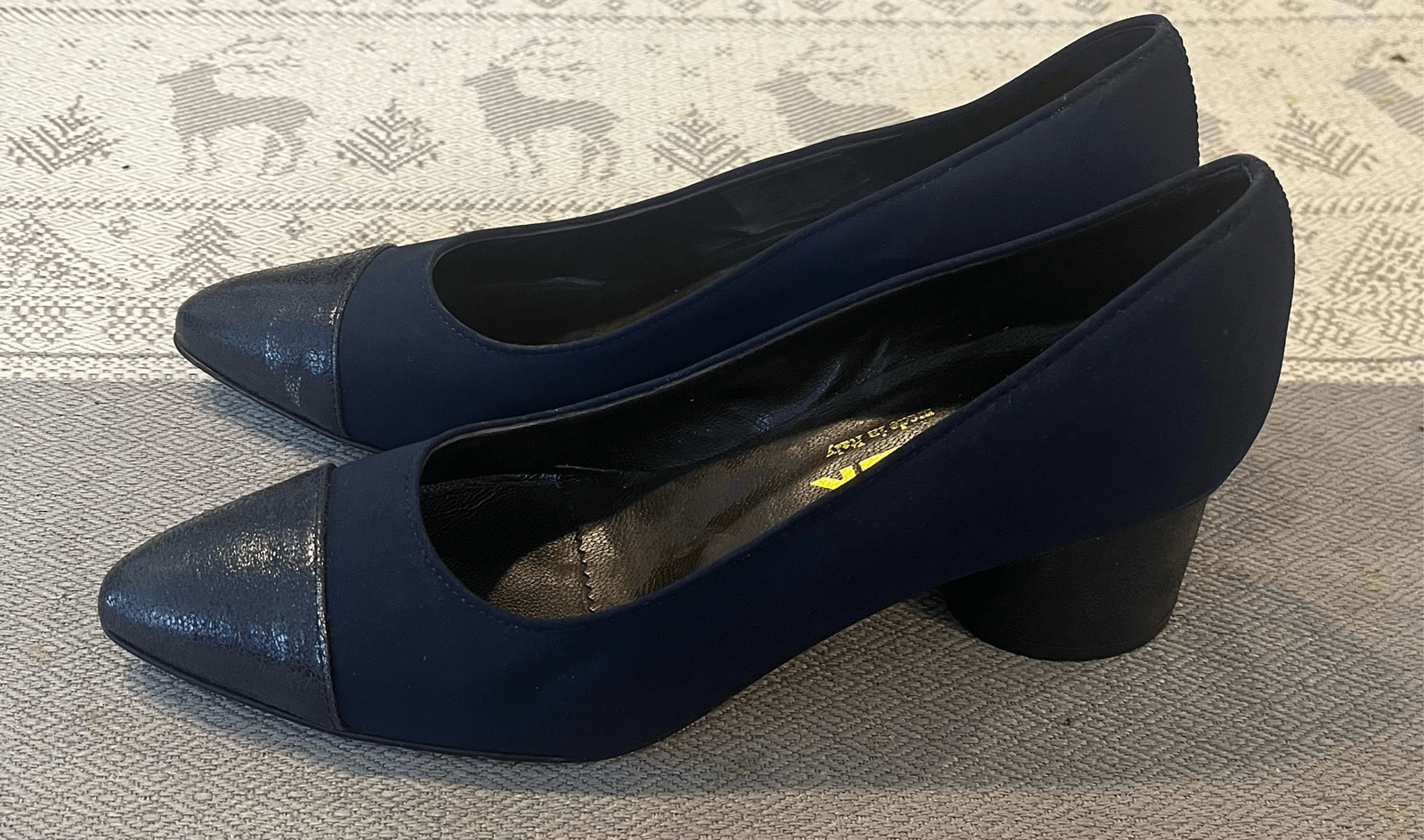 $ 22.68Coach Silver Gray Leather Block Heel Pumps Size 8B with Logo Buckle