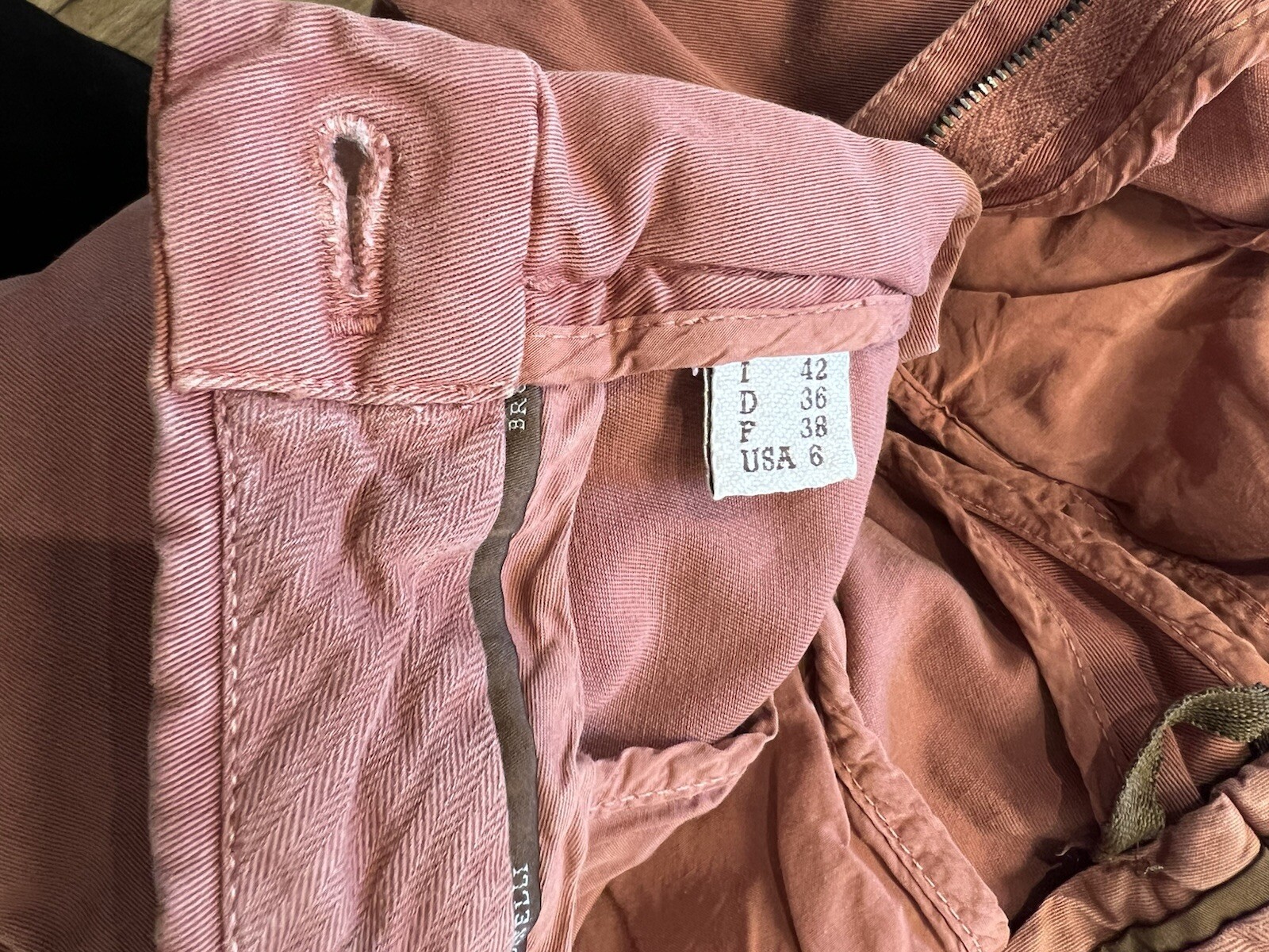 Brunello Cucinelli Traditional Fit Chino Pants Women Size 6 Cotton Blend Made In Italy Brunello Cucinelli with no flaws no rips tears or stains. Has consistent fading all throughout. Priced accordingly.