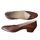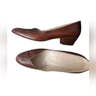 Step into timeless sophistication with these Bruno Magli Italian leather pumps — the vintage minimalist heel style making waves in the quiet luxury revival. Expertly crafted in Italy from genuine vero cuoio leather, these brown low-heel pumps feature subtle geometric stitching, almond toe, and sleek lines that capture the refined 80s aesthetic trending across influencer wardrobes and TikTok’s “old money” fashion feeds. Perfect for pairing with midi skirts, trousers, or structured blazers, these are an essential capsule wardrobe piece that bridges vintage heritage and modern minimalism. Details: • Brand: Bruno Magli • Made in Italy • Size: 8AA (narrow fit) • Color: Brown • Genuine vero cuoio leather upper and sole • Almond toe • Geometric stitched detail on vamp • Low block heel (approx. 1.5”) • Slip-on style • Classic 80s minimalist silhouette Condition: Excellent vintage condition — light wear to soles consistent with age, uppers in beautiful shape, minor creasing on toes; see photos Original Retail: Approx. $275