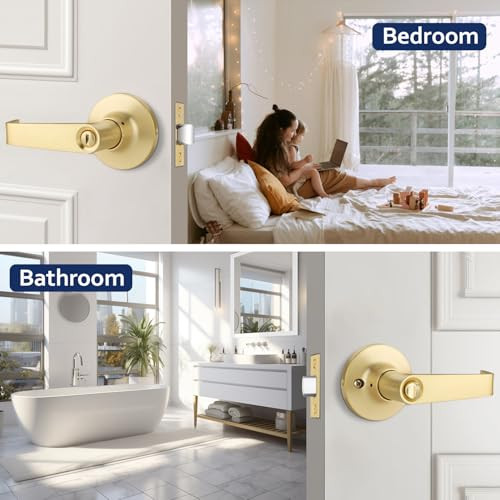 Return Policy Fast Delivery Trusted seller Brushed Gold Door Handles Interior, 3 Pack Bedroom Door Knobs, Privacy Door Knob with Lock, Bathroom Door Handle, Keyless Door Lever, Universal Handing Product Description Privacy Function: The door handle can be locked by a thumb turn button on the inside; The exterior is keyless, but in an emergency, you can use a coin or other flat objects to insert into the grooves and open the door from the outside; Use it for your bedrooms, bathrooms, and other privacy needs Long Service Life: Made of Zinc Alloy, our door handle is sturdy and durable; It has a thick coating that is not only waterproof and rust-free, but also won't peel off easily; In addition, it is tightly structured when installed correctly, which will not sag and is virtually noiseless Distinctive Design: Featuring a satin brass finish, which adds a luxurious and elegant touch to this door knob, making it perfect for decorating modern-style room doors; Besides, this door handle is also specially designed in the L-shaped and fits in your palm for a comfortable grip Reversible & Adjustable: This door handle is reversible for left and right sided doors; It fits door thickness from 1 3/8 inches (35 mm) to 1 3/4 inches (45 mm), and the door latch can be adjusted between 2 3/8 inches (60 mm) - 2 3/4 inches (70 mm) from the edge Easy to Install: Don't worry about the complicated steps or a lack of specialized tools; Our door handles are easy to install, all you need is just a screwdriver; The installation manual comes with the package box, please read the manual carefully before installation Shipping Returns Payment Shipping Shipping is FREE to all addresses other than APO/PO boxes in the lower 48 states. All our stock ships from US-based warehouses. Shipped via USPS or UPS (depending on location and package weight) Unless stated otherwise, all orders will ship within 24-72 hours of your payment being processed. Check our feedback to see the great reviews of FAST shipping we offer. Returns Seller does not accept returns Payment We currently accept payment via eBay managed payments only. Once payment is cleared, we will dispatch your shipment within 1-3 business days. Please refer to the "Shipping" tab for more information regarding shipping speed to your destination.