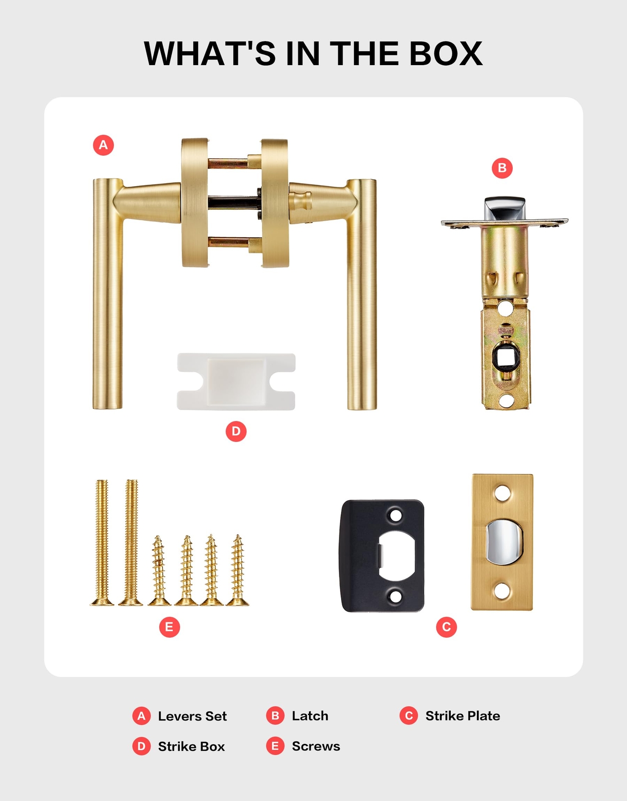 Brushed Gold Door Handles Interior, Gold Interior Door Handle, Heavy Duty Interior Bedroom/Bathroom Lever Door Handle Interior(1 Pack) Brushed Gold Door Handles Interior, Gold Interior Door Handle, Heavy Duty Interior Bedroom/Bathroom Lever Door Handle Interior(1 Pack) Product Overview Key Features 【Privacy Door Handle Function】The brushed gold privacy door lever hasn’t keys. Locks from the inside with a push button and unlocks from the outside with a needle in emergency. 【365 Days 】The solid zinc alloy and brass, smooth finish, brush appearance and substantial, easy-to-grasp lever will subtly elevate and enhance commercial areas or residences alike. If it does not meet your satisfaction,we will provide you with free replacement or return and refund. 【Premium Material】This modern privacy door lever is sturdy and stable which is made of heavy duty zinc alloy and metal.The surface of our upgraded interior door knobs adopts electroplating process, which has more adhesion the powder coated or painted surface of other products, will not fall off. 【Adjustable Latch】Gold door handle interior have adjustable universal latch - 2-3/8"(60mm) or 2-3/4"(70mm). Fits door thicknesses of 1.38"(35mm) to 1.78"(45mm). Note : The round plate of the latch is unremovable. 【Easy Installation】All interior door handles are reversible and can be installed left-handed or right-handed. Privacy door handles come with all accessories,included installation instructions and installation video to help you complete the simple installation of the door handle lock in less time. Return Policy ⦿ Items can be returned within 30 days. Contact us through eBay messaging for return instructions. ⦿ We guarantee 100% satisfaction. Any issues will be resolved promptly. ⦿ Free shipping and returns with a 30-day money-back guarantee. ⦿ Please contact us for the return shipping address. Shipping Information ⦿ We ship to the address provided on eBay. Please ensure it is accurate. ⦿ Standard delivery time is 3-5 business days. ⦿ We use reputable shipping services such as UPS, FedEx, and USPS. ⦿ Currently, we ship only within the 48 contiguous states of the USA. ⦿ For any shipping concerns, feel free to contact us. Customer Support ⦿ For any inquiries, please contact us via eBay messaging. We typically respond within 24 hours. ⦿ Customer satisfaction is our top priority. ⦿ If you encounter any issues, please contact us before leaving feedback, and we will do our best to resolve them. About Us We are dedicated to providing high-quality products at competitive prices, ensuring that our customers receive the best value. Our team is committed to delivering exceptional customer service and a seamless shopping experience. With years of experience in the industry, we have established strong relationships with suppliers, enabling us to offer a diverse range of products. We continuously strive to expand our product selection and improve our services to exceed customer expectations. Our mission is to achieve 100% customer satisfaction by addressing any concerns promptly and effectively. Thank you for choosing our store. We look forward to serving you again and making your shopping experience delightful.