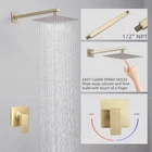 INCLUDES: 8 Inch square rainfall shower head(304 stainless steel), 16 Inches extra long shower arm(Metal), Rough-in valve and trim kit(Brass). Made of all metal, durable and sturdy, long service life. HIGH PRESSURE SHOWER: The combination of ultra-thin and air-in technology offers a strong and high pressure shower, you can enjoy spa shower at home ever under the low pressure area. LUXURY DESIGN: Swivel ball allows you to adjust the angle of the showerhead to suit your preference. UNIVERSAL TYPE: 1/2" NPT thread shower arm, standard in the USA. Simply screw on and turn on your new waterfall shower.