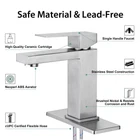 【cUPC Certified】— Bathroom faucets for sink 1 hole is made of premium quality lead-free stainless steel,which offers excellent corrosion resistance for long-lasting durability and safe for . It is also designed with cUPC certified supply lines for added safety and reliability 【Modern Design】— Vessel Sink faucet Brushed Nickel finish creates a modern look to resists water spots and fingerprint, requiring less cleaning.Its square geometric shape and minimalist design add a modern touch to any bathroom,lavatory,restroom,RV,farmhouse or vanity bar 【Single Handle & Pop-Up Drain】— RV Bathroom faucet single handle for easy adjustments to the stream and water temperature, which is suitable for daily use.The Pop-Up design only needs to press lightly, and the pop-up drain will quickly sprinkle water. 10% faster than traditional drain plugs. And the sturdy bouncing core can ensure you press more than 50,000 times 【Leak Proof & Water Saving】— RV bathroom vanity faucet adopts a ceramic disc cartridge,a high seal performance cartridge valve provide you a smooth stream and low probability of leakage. And the service life can reach 500,000 times. The air bubbles provide effective limescale protection, keeping the water flow straight and soft without splashing,can save 30% of water 【Package Included】— With 5.9" deck plate,stainless steel bathroom faucet is designed for 1 or 3 hole 4 inch center sink installation.2 flexible Hoses(Hot and cold),and 3/8" female compression thread with adapters included for an easy install. 【CEC Information】: Model Number:20301BN Manufacturing:KaiPingShi KeRui WeiYu YouXian GongSi Brand:.