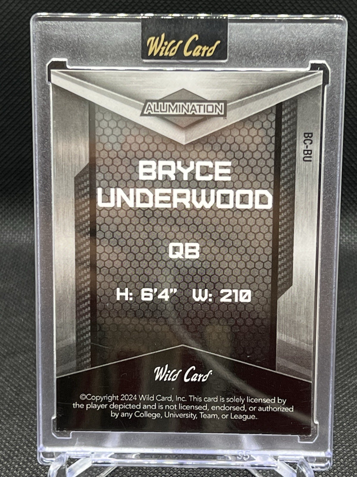 Capture the excitement of college football with this Bryce Underwood 2024 Wild Card Alumination Rookie Card #BC-BU. Featuring the rising star in his Michigan Wolverines gear, this card is a must-have for fans and collectors alike. With its striking purple parallel variety, it stands out in any collection, emphasizing its rarity with a serial number that indicates it's one of only 15 prints. Proudly made in the United States and part of the 2024 Wild Card Alumination Just The Hits set, this card comes in standard size and English language. It's an original piece, not a reprint, ensuring its authenticity. While it's not autographed, its uniqueness lies in its limited print run and the promising career of player Bryce Underwood, making it a valuable addition for enthusiasts of NCAA memorabilia.Free shipping ends April 13, 2025.