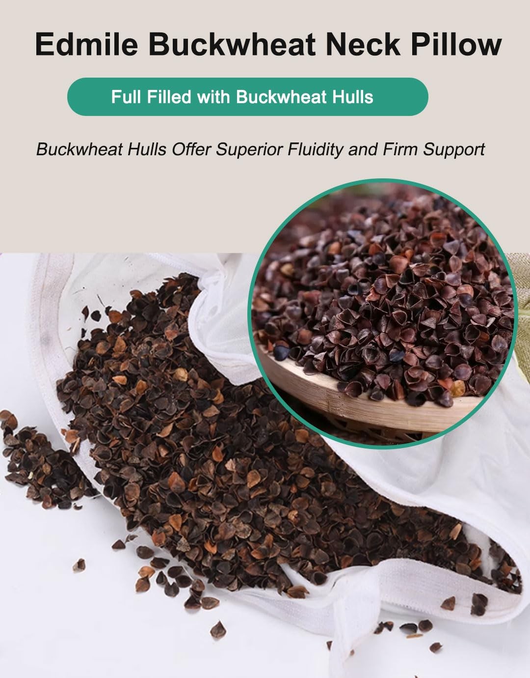 Our Buckwheat Cervical Pillow Manaul Measure 15 X 5 inches with a height of 3 - 4 inches, it's compact yet powerful. Filled with buckwheat hulls, neck support buckwheat hulls pillow filling allowing air circulation, keep you cool during summer nights. Neck pain cervical pillow's triangle lateral and middle arc design adheres to ergonomics. The filling - adjustable feature ensures a personalized fit for your head and cervical spine, without collapsing like traditional foam recliner neck pillow. This neck roll pillow for sleeping for pain relief is not just comfortable; alleviates tension, muscle pain, stiff neck, headaches, and stress, aligning your spine and reducing muscle pressure. Whether you're a back or side sleeper, small neck roll pillow for neck and shoulder pain provides firm yet adaptable support that conforms to your neck's curve. Our cervical roll with hidden side zipper allows you to easily adjust the filling amount to your preferred firmness. The outer cover is removable and machine - washable, and the inner insert can be sun - dried for maintenance. Ideal for home, office, travel, lunch breaks, office naps, or yoga sessions, this cooling pillows for sleeping is suitable for both men and women. Everyone spend about one - third of your life sleeping, so why not make it as comfortable as possible with our neck bolster pillow roll? buckwheat lumbar support pillow, buckwheat filler for pillows compatible with various chairs like recliners, chairs, couches, and sofas. Whether you're in the bedroom, study, living room, car, outdoors on a patio recliner, or at the office, the buckwheat pillow neck provide the comfort for any space or settings. BUCKWHEAT HULLS FILLING:Buckwheat Pillow filled with cooling buckwheat hulls that enable air circulation, cool you down fast in summer for a comfortably cool sleep night's sleep; The buckwheat neck pillow for neck support in a recliner or under your knees; EVEN FIRM SUPPORT: The buckwheat bolster pillow designed with a triangle lateral and middle arc shape and provides even support, from your shoulders to the base of your head; The neck pillow ergonomic design ensures all - around comfort. Ideal for between the knees for side sleepers or under the knees for back sleepers; RESTFUL SLEEP: Our buckwheat neck roll pillow's unique shape helps eases tension, muscle pain, stiff necks, headaches, and stress; recliner neck pillow offers firm yet comfortable support that fits in the curve of your neck perfectly, to relieve both neck shoulder and back pain; ZIPPER OPENING FOR EASY ADJUSTMENT:Both the inner and outer cases of buckwheat hull pillow with zippers, has a filling - adjustable design without collapse like foam; Simply unzip add or remove some the buckwheat hull filled and customize the neck roll pillow’s height for optimal neck support during sleep; WASHABLE COVER: The buckwheat pillows for sleeping outer cover is durable fabric with reinforced seams, breathable and easy to clean can be washed, and the inner insert can be aired and sun - dried for maintenance; As a cervical neck pillow travel companion, neck support from office chair to car, and on all visits and trips.