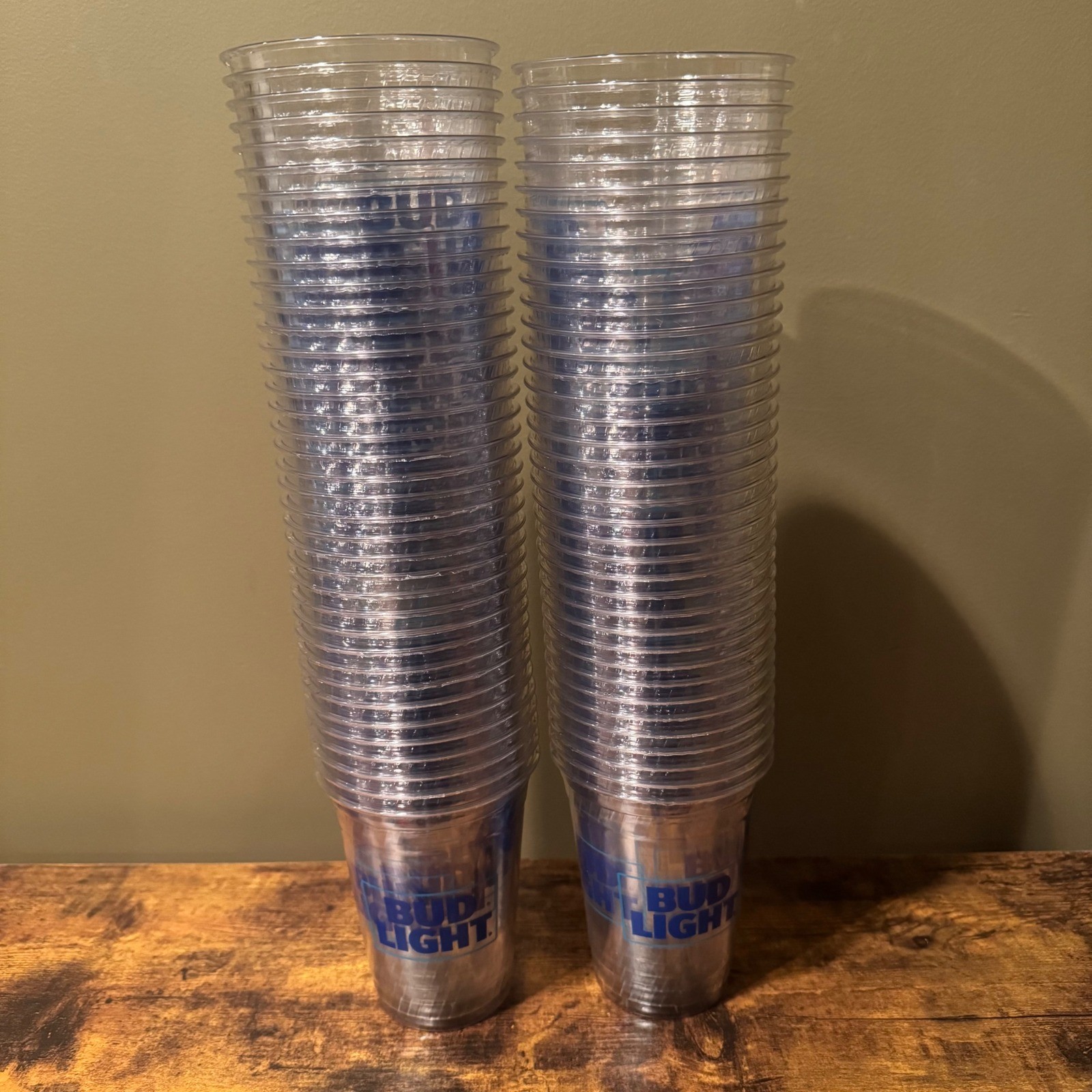 Cheers to good times with this bulk pack of Bud Light clear plastic cups. Imagine the convenience of having plenty of sturdy cups ready for any gathering, from backyard barbecues to game day celebrations. Their classic clear design with the iconic blue Bud Light logo adds a festive touch to any event, ensuring your guests have a refreshing way to enjoy their favorite beverages. Perfect for parties, tailgates, or casual get-togethers. Item Type: Cup Only Shape: Round Unit Type: Unit Keywords: party cups, plastic cups, beer cups, event supplies, drinkware, party favors, tailgating, social gatherings, casual dining, outdoor entertaining, promotional cups, bulk party supplies