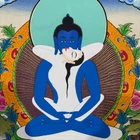 Namaste and Welcome to my Gallery!!! All of the paintings and arts in my gallery are originally handmade and hand-painted by my family members and other local artists who have been practicing their craft for over two decades. My father is Master Artist from Nepal with an experience of more than four decades; you can see some of his work in this Gallery. Also you can see some of the beautiful and soulful artwork of talented local artists from Himalayas. ~~ Buddha Shakti Thangka~~ Buddha Shakti is deep blue in color, symbolizing the sky or emptiness of mind. Samantabhadri or buddha’s consort is white in color, symbolizing the aspect of the clarity of our mind. The male female of Adi Buddha in union depict the unity of emptiness and cognizance. Samantabhadri is completely nude and while not ornaments symbolizing that she is free from all thought constructs. It means that enlightenment can be realized only when we are free from thought constructs and one perceives the empty nature of the mind directly. [Size = 42cm x 33cm] Material Used: • Cotton Canvas • Natural Pigments and colors • Gold leaf ~Excellent for meditation or home/office decor, ~Tibetan Yoga Wall Art ~Genuine 100% hand-painted from Himalayas Please feel free to contact me if you have any question regarding the painting.