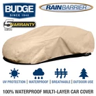 Our Budge Rain Barrier Car Cover Fits Chevrolet Camaro 1974, Tan. The Budge Rain Barrier car cover offers easy to use, 100% waterproof indoor and outdoor protection. This vehicle cover is constructed from a 3 layer material consisting of an inside and outside layer of spun-bond polypropylene. The middle layer is made from a waterproof film. Unlike most waterproof car covers, the Budge Rain Barrier features micro-pore technology that allows condensation to escape as evaporated gas – giving your vehicle inside and outside protection. This cover is great for outdoor and indoor use. The soft, nonabrasive material will not harm the surface of your vehicle. This cover features a full elastic hem and built-in grommets. This cover is available in a tan color. Includes a storage bag and antenna patch. This Budge Rain Barrier Car Cover Fits Chevrolet Camaro 1974