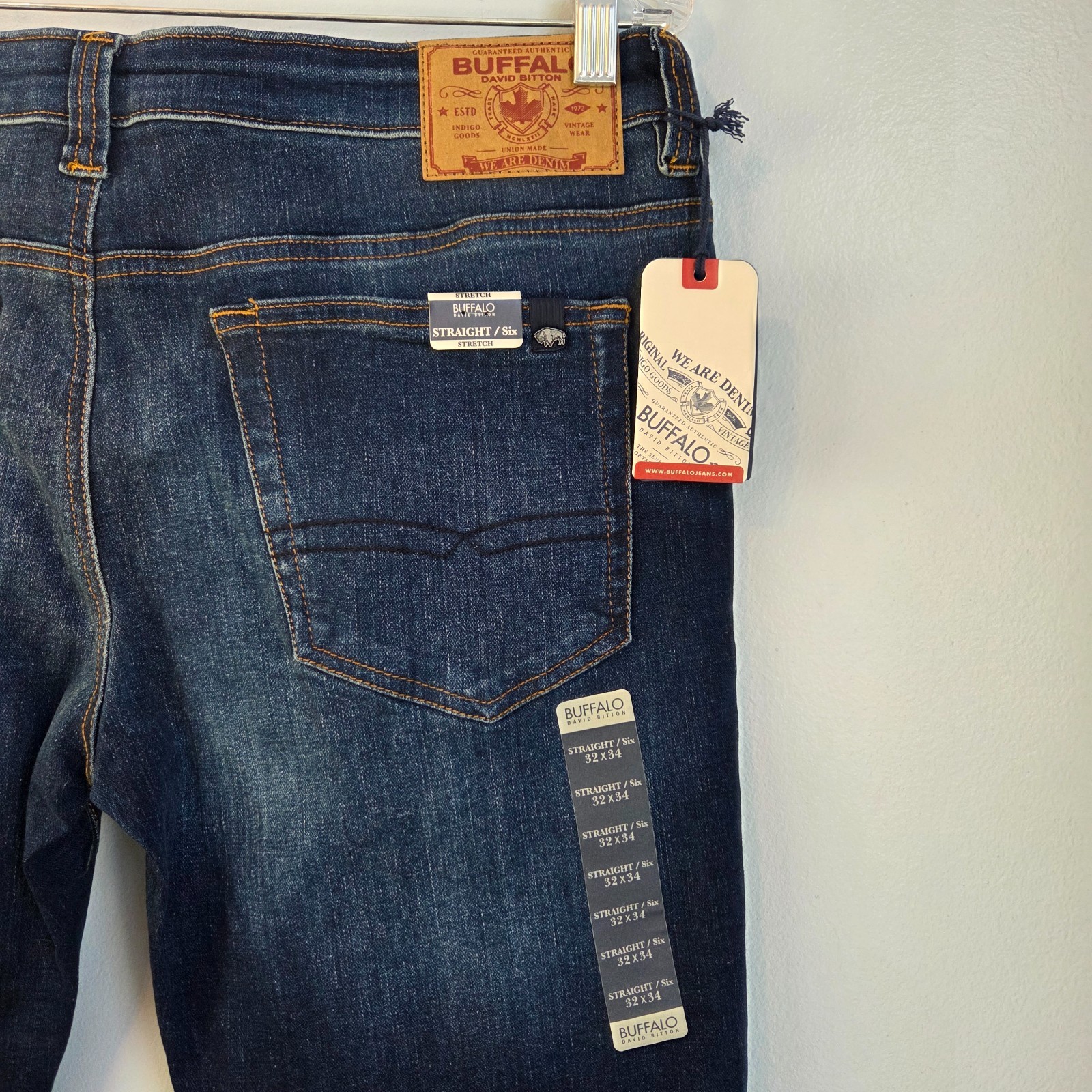 The Buffalo David Bitton Men's Size 32 Straight Six Stretch Jeans in a dark wash denim are a stylish and versatile addition to any wardrobe. With a mid-rise and straight fit, these jeans offer a comfortable and flattering look. The stretch fabric adds flexibility and ease of movement, making them suitable for all seasons. The classic 5-pocket design, button and zipper closure, and logo accents complete the timeless appeal of these Buffalo David Bitton jeans. Made from cotton and machine washable, they are both durable and easy to care for.
