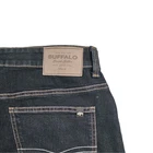 The Buffalo David Bitton Straight Six Jeans in men's size 32×32 feature a dark rinse wash with a comfortable stretch fit. Made of a blend of 80% cotton, 19% polyester, and 1% elastane, these jeans have a classic 5-pocket design with a mid-rise waist. The dark wash and solid pattern make them versatile for any season, while the brand's signature accents like buttons and zippers add a touch of style to the straight-leg cut. Ideal for a casual yet fashionable look, these jeans from the Straight Six collection are a great addition to any wardrobe. ● Actual Measured Waist 34" ● Inseam 32" ● Straight/Six ● Stretch ● MSRP $109.00 (3)